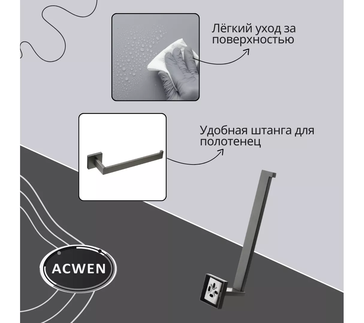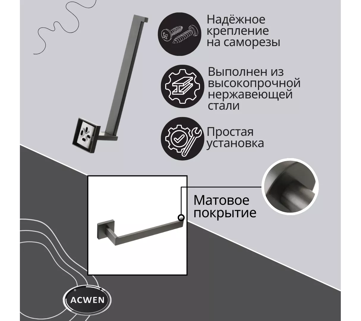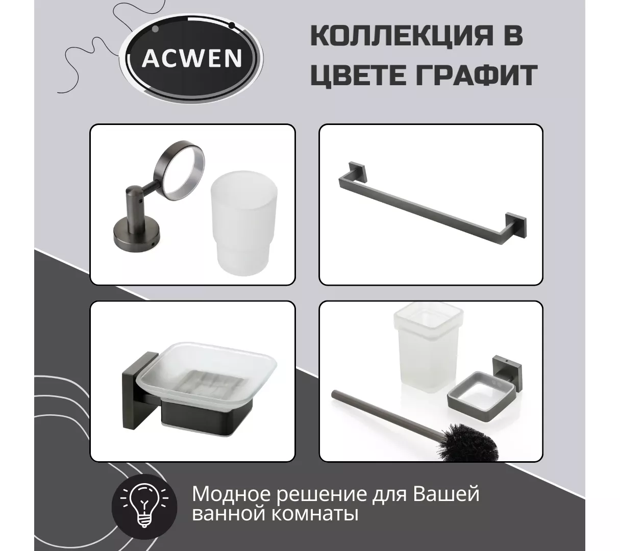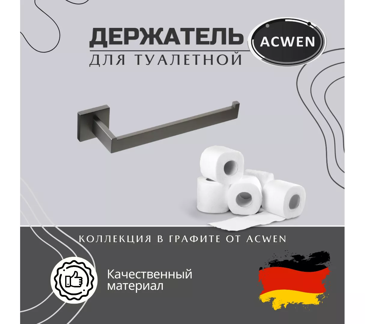 Держатель для туалетной бумаги ACWEN в графитовом исполнении сочетает современный дизайн и функциональность. Изготовлен из прочного материала, который обеспечивает долговечность даже при интенсивном использовании. Компактная конструкция легко монтируется на стену и удерживает рулоны различных размеров без скольжения.Сдержанная палитра идеально впишется в интерьер любого помещения, добавляя акцент стиля.Отсутствие острых углов делает изделие безопасным для детей и домашних животных. Простое обслуживание и устойчивость к загрязнению сохранят аксессуар в идеальном состоянии годами.