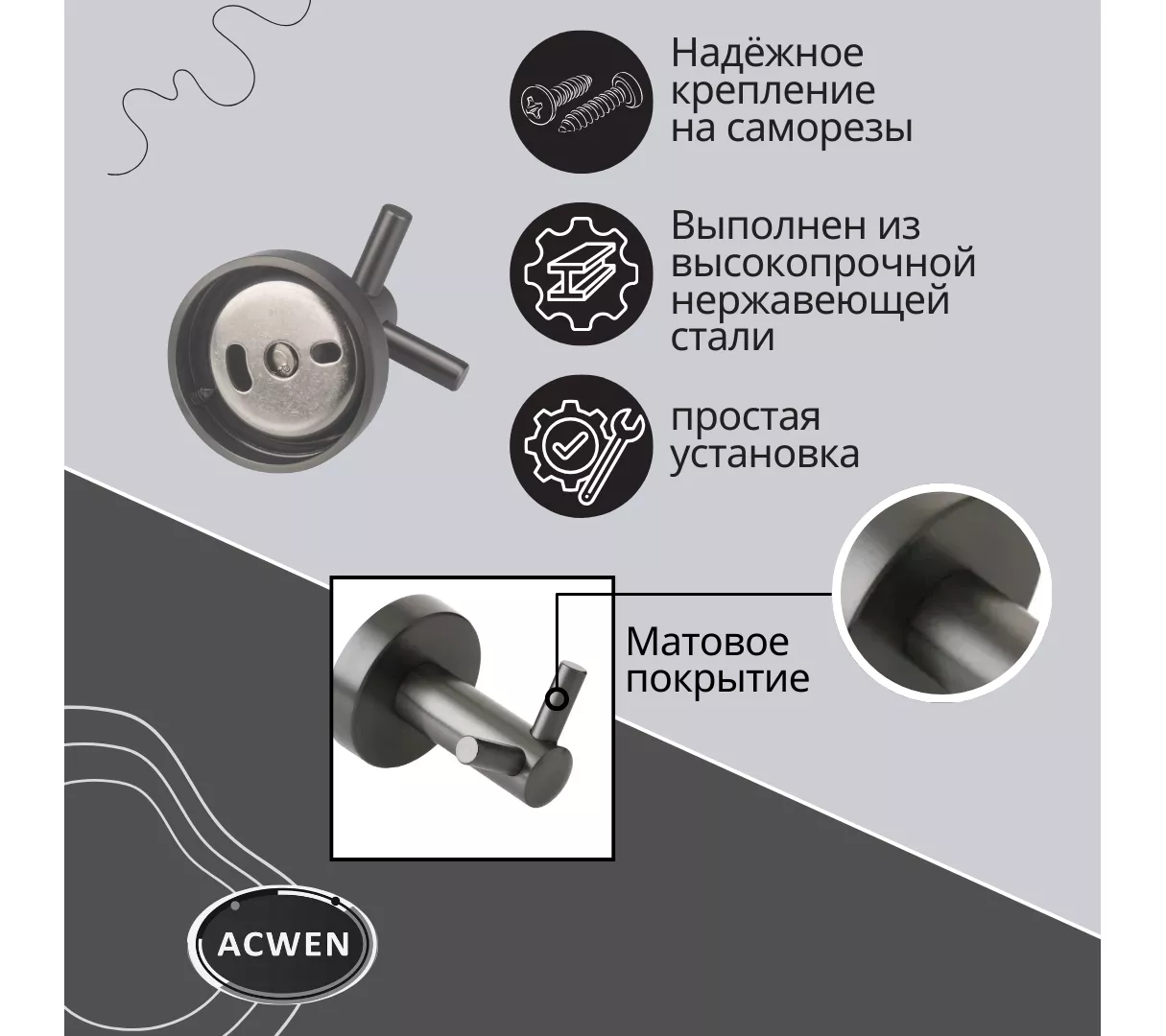 Крючок для полотенец двойной Графит ACWEN SS84606GGS