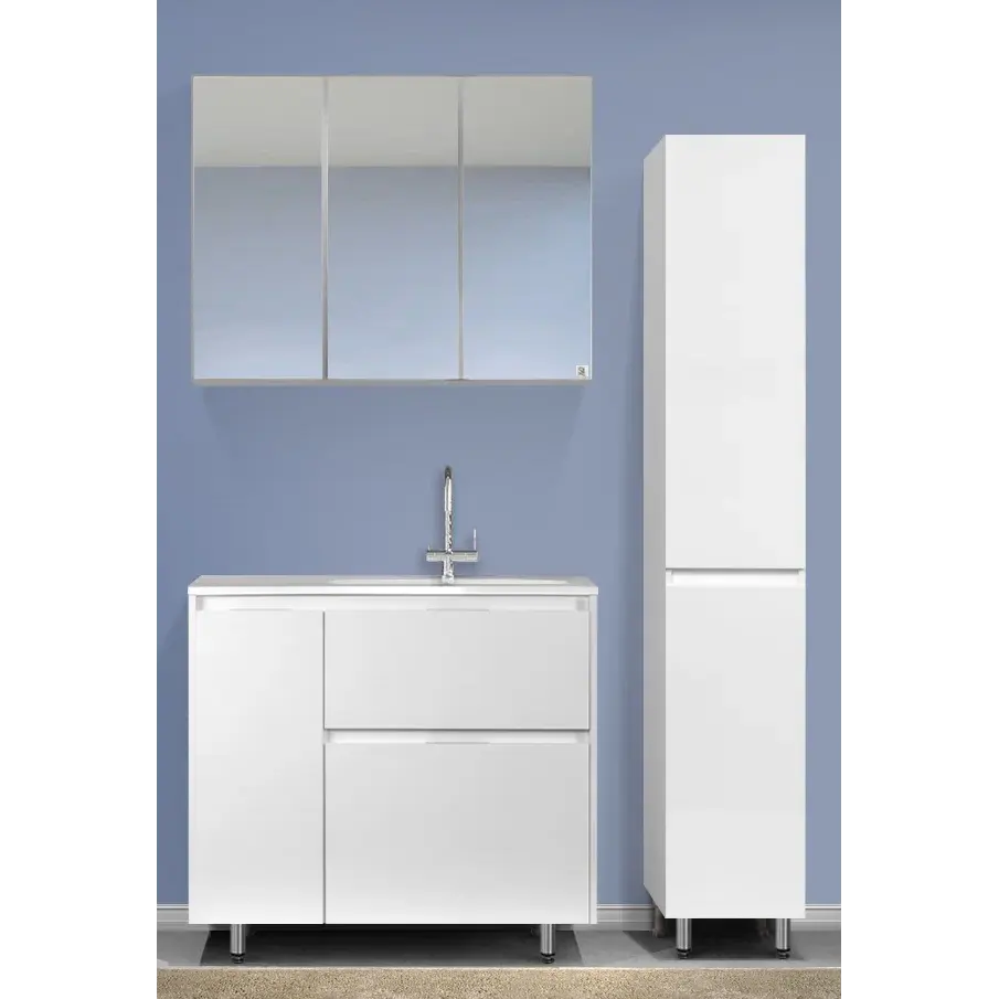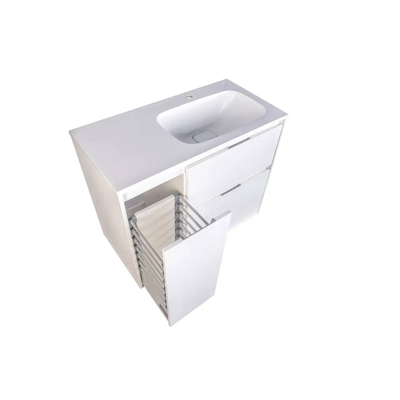 Тумба напольная "Барселона 90" правая (2 ящ.) с выкатной корзиной, Люкс белая, Plus