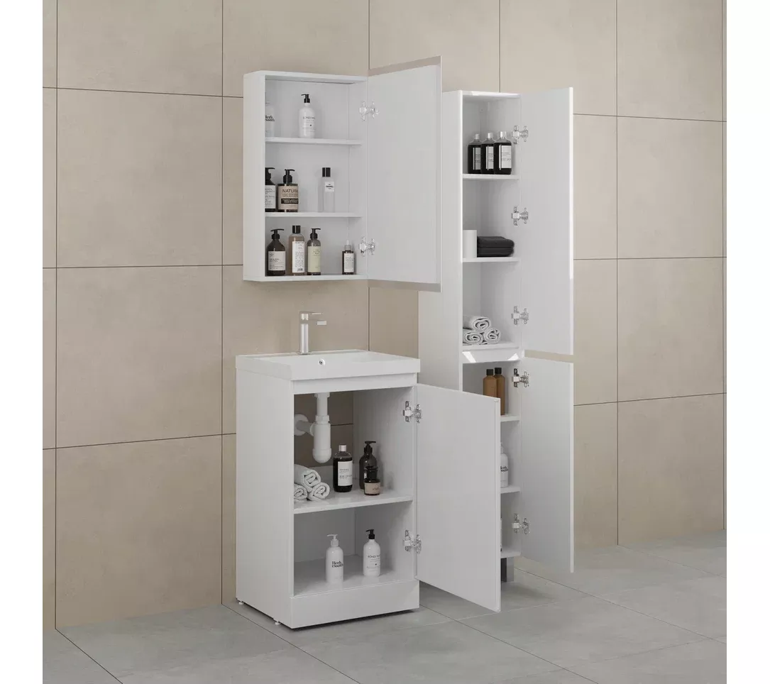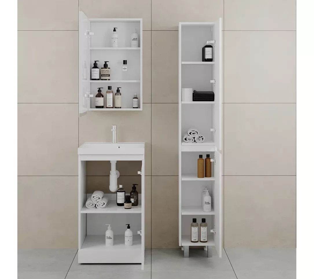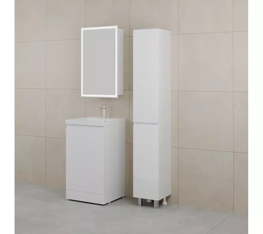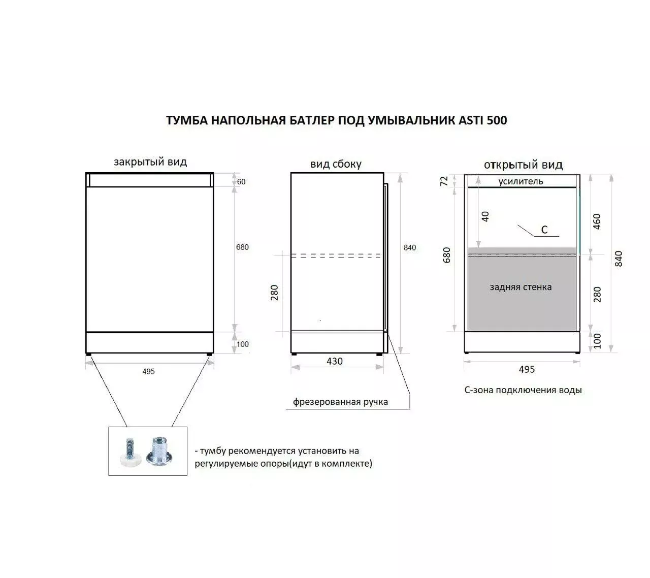 Тумба напольная "БАТЛЕР" (1 ящ.) с раковиной ASTI 50 Люкс антискрейтч белый глянец PLUS