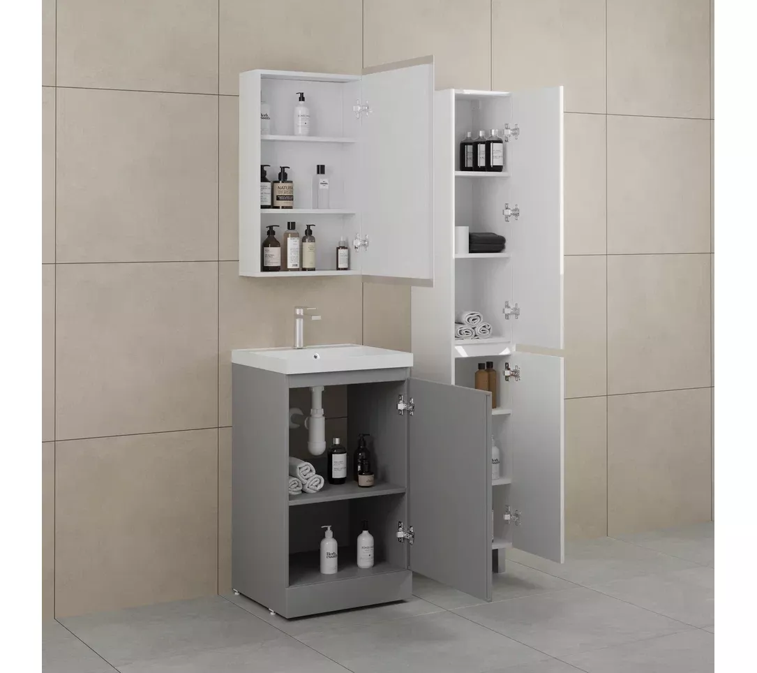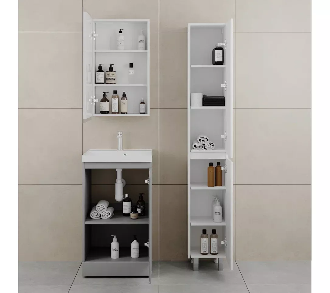 Тумба напольная "БАТЛЕР" (1 ящ.) с раковиной ASTI 50 Люкс антискрейтч серый PLUS