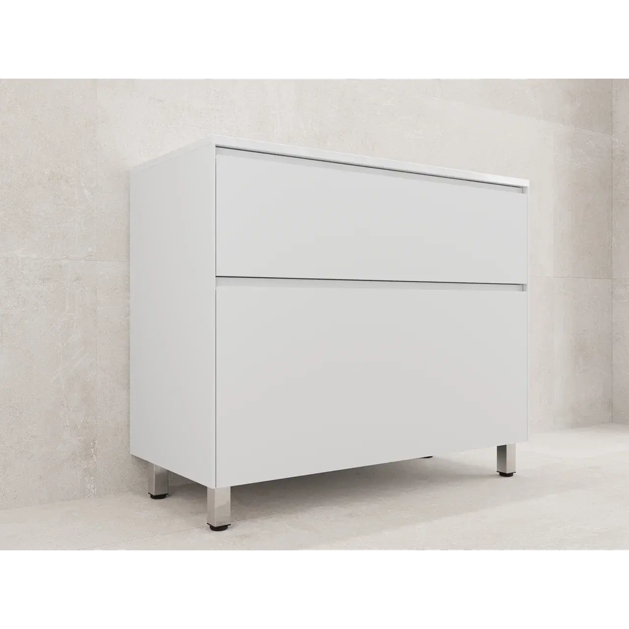 Напольная конструкция обеспечивает устойчивость и надежность, а также легкий доступ к содержимому. Тумба оборудована двумя вместительными ящиками, которые позволяют удобно организовать хранение косметических средств, полотенец и других предметов.