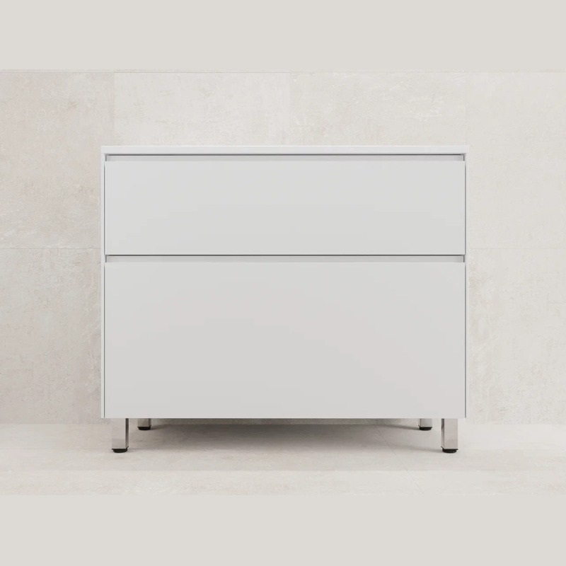 Напольная конструкция обеспечивает устойчивость и надежность, а также легкий доступ к содержимому. Тумба оборудована двумя вместительными ящиками, которые позволяют удобно организовать хранение косметических средств, полотенец и других предметов.
