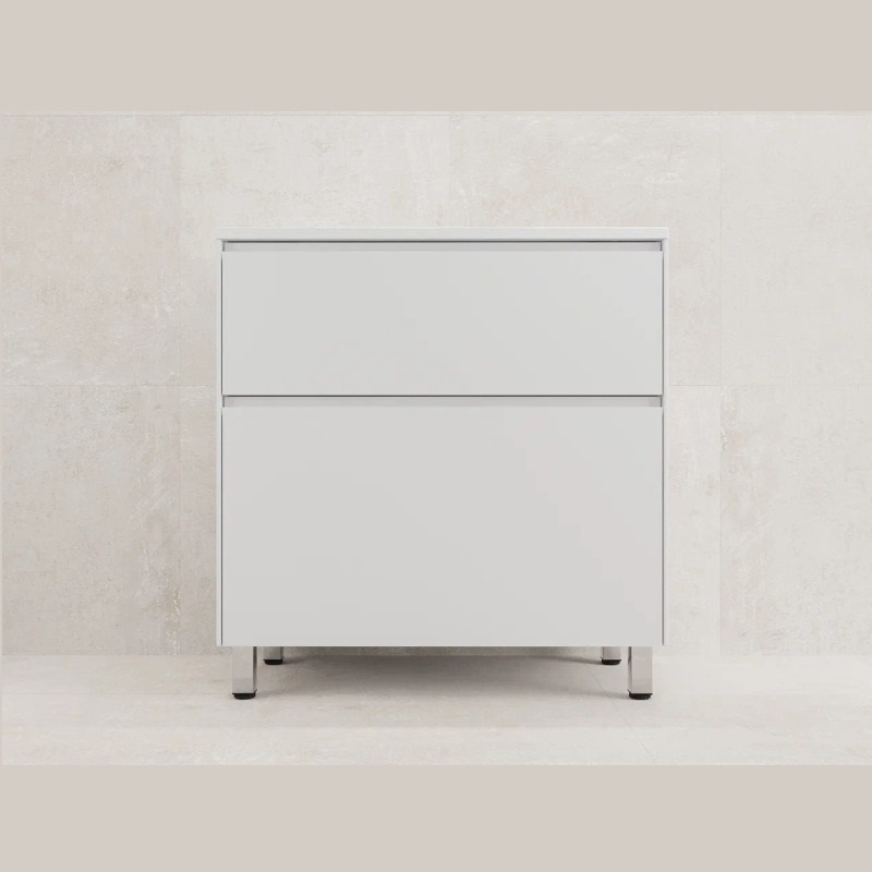 Напольная конструкция обеспечивает устойчивость и надежность, а также легкий доступ к содержимому. Тумба оборудована двумя вместительными ящиками, которые позволяют удобно организовать хранение косметических средств, полотенец и других предметов.