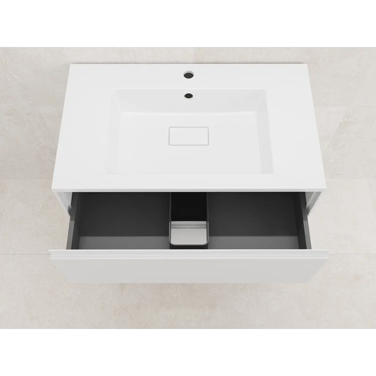 Изготовлена из высококачественного MDF с эмалевым покрытием, обладающим высокой стойкостью к влаге и механическим повреждениям. Матовая белая поверхность придает тумбе современный и элегантный вид.