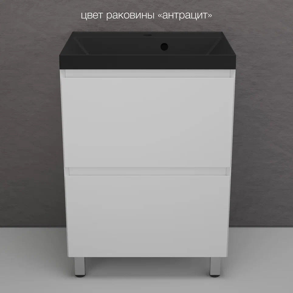 Тумба напольная Style line "Манхэттен 100/80/70/60" ЭМАЛЬ с раковиной ASTI, 2 ящика, PLUS, белый матовый