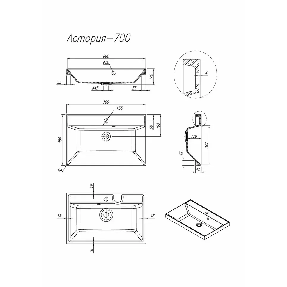 Тумба напольная Style line "Манхэттен 100/80/70/60" ЭМАЛЬ с раковиной ASTI , 2 ящика , PLUS, графит
