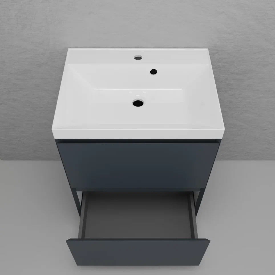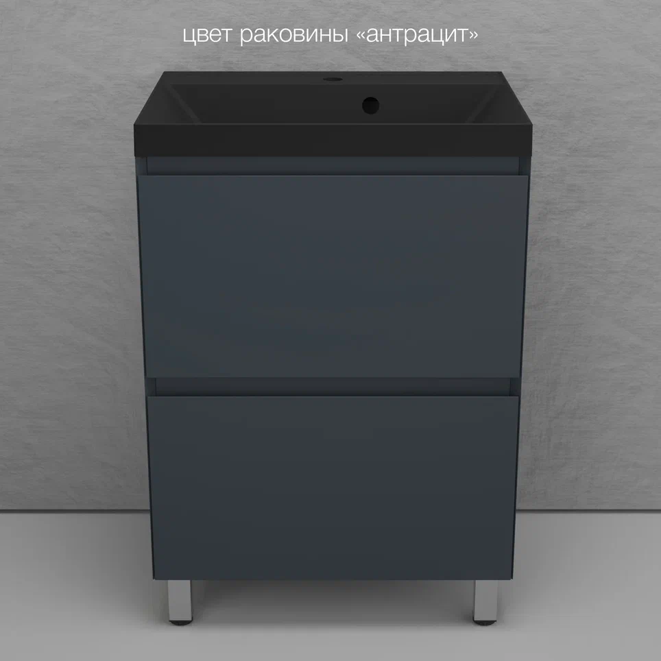 Тумба напольная Style line "Манхэттен 100/80/70/60" ЭМАЛЬ с раковиной ASTI , 2 ящика , PLUS, графит