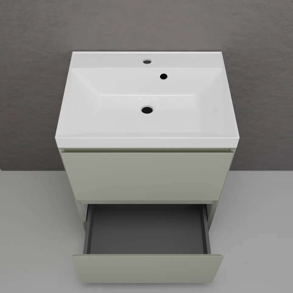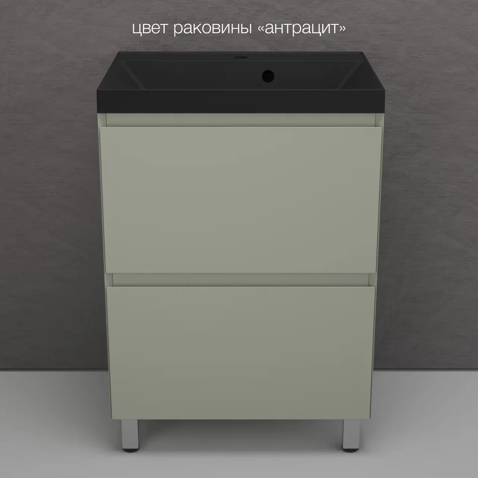 Тумба напольная Style line "Манхэттен 100/80/70/60" ЭМАЛЬ с раковиной ASTI , 2 ящика ,PLUS ,олива