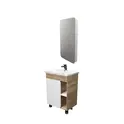 Мебель выполнена в современном минималистичном стиле, для которого характерны правильные геометрические формы, рациональность и эргономичность. Специально продуманная конструкция без ручек позволяет создать цельный легкий образ, не утяжеленный фурнитурой и дает возможность гармонично вписаться в любой интерьер. Для бережливой повседневной эксплуатации, тумбы оснащены демпферами и дверными петлями с доводчиками, обеспечивающими бесшумное и мягкое закрывание.