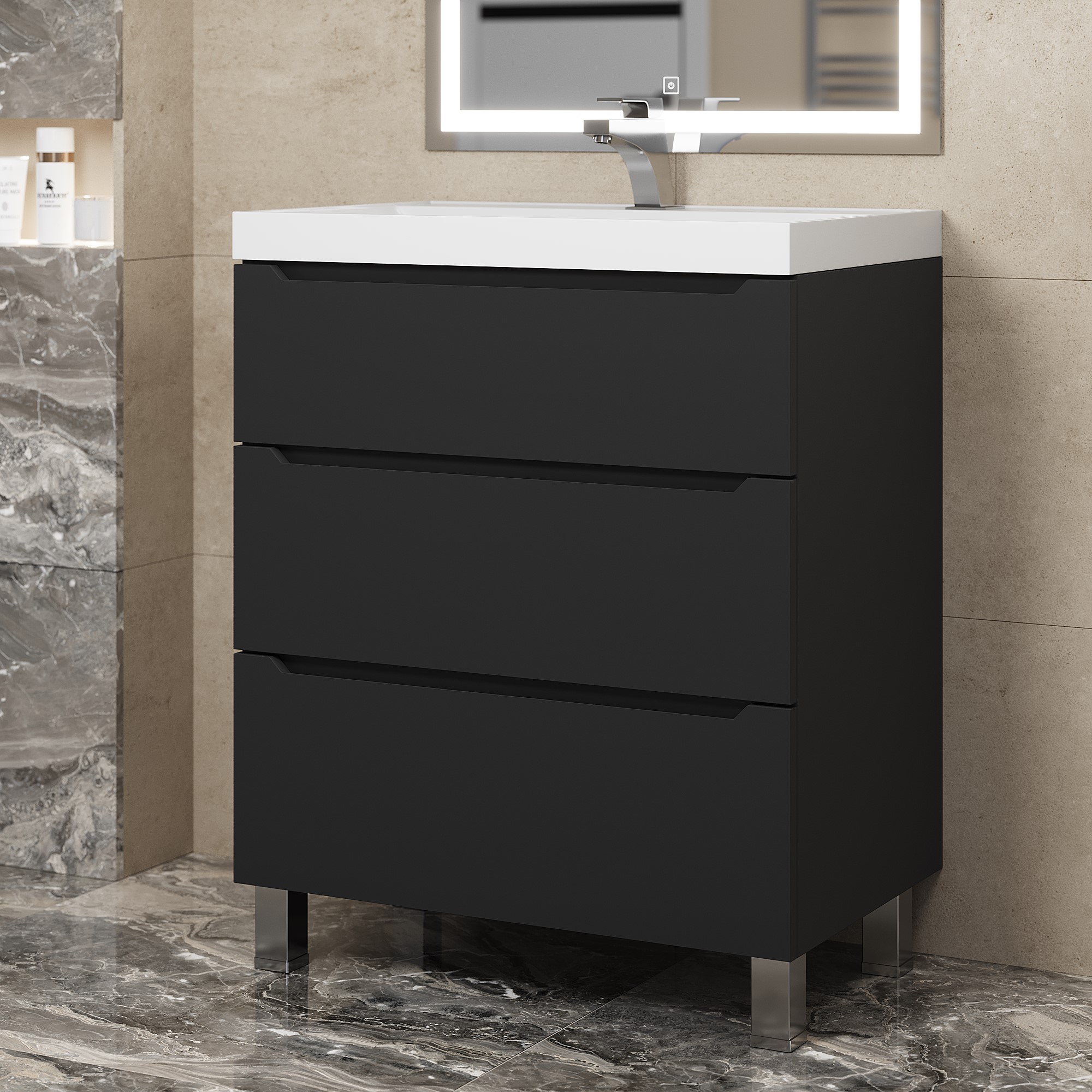 Напольная тумба под раковину для ванной Uperwood Tanos с тремя выдвижными ящиками представляет собой функциональное, надежное и практичное решение, которое отлично впишется в любой современный дизайн ванной комнаты.