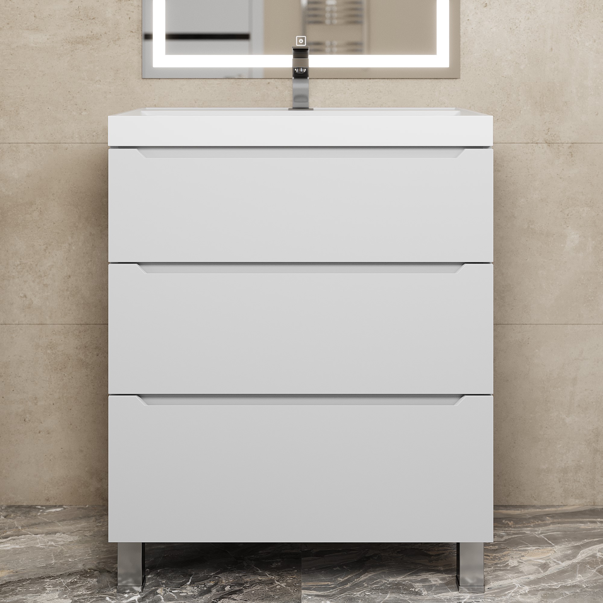 Напольная тумба под раковину для ванной Uperwood Tanos с тремя выдвижными ящиками представляет собой функциональное, надежное и практичное решение, которое отлично впишется в любой современный дизайн ванной комнаты.