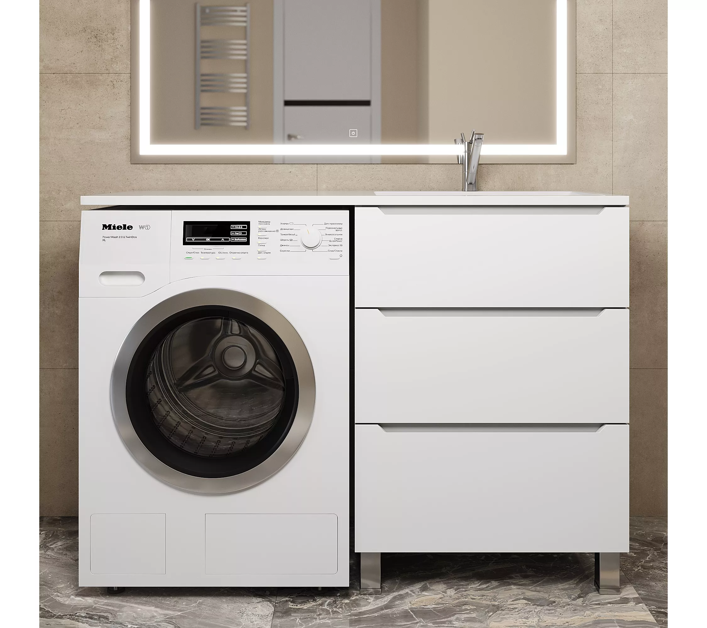 Напольная тумба для установки со стиральной машиной сочетает в себе функциональность и стильный дизайн, предлагая решение для организации пространства.