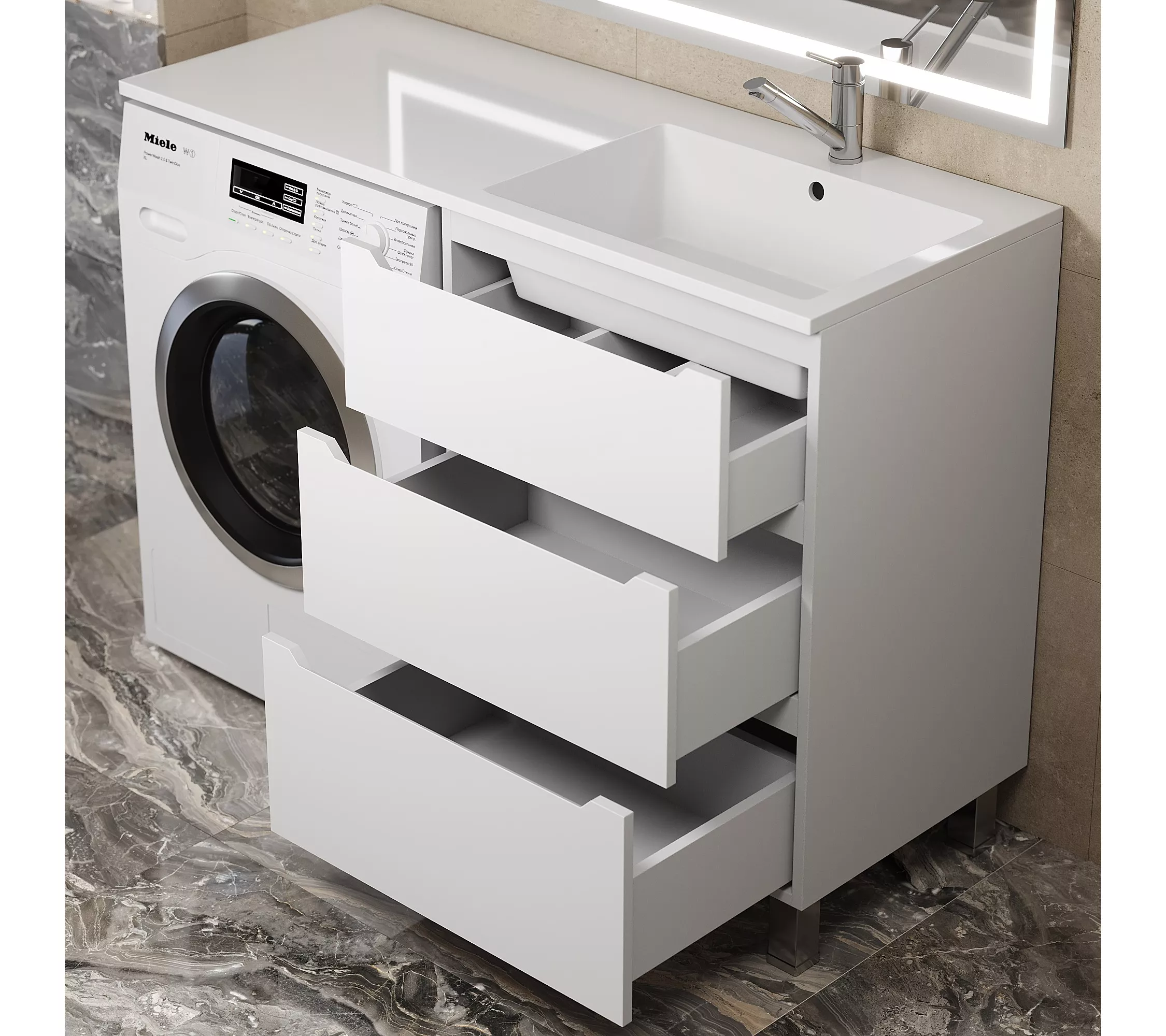 В ней предусмотрено три удобных ящика, что позволяет удобно хранить все необходимые предметы: от средств по уходу за бельем до мелочей для ванной. Теперь у вас всегда под рукой будет все, что нужно, без лишнего беспорядка.