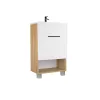 Компактная мебель с уникальными габаритами - глубина тумбы всего 30 см. Мебель выполнена в современном минималистичном стиле, для которого характерны правильные геометрические формы, рациональность и эргономичность. Специально продуманная конструкция без ручек позволяет создать цельный легкий образ, не утяжеленный фурнитурой и дает возможность гармонично вписаться в любой интерьер. Для бережливой повседневной эксплуатации, тумбы оснащены демпферами и дверными петлями с доводчиками, обеспечивающими бесшумное и мягкое закрывание. В комплекте идет раковина из полимерной керамики и специализированный регулируемый телескопический сифон.