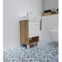 Компактная мебель выполнена в современном минималистичном стиле, для которого характерны правильные геометрические формы, рациональность и эргономичность. Для бережливой повседневной эксплуатации, тумбы оснащены демпферами и дверными петлями с доводчиками, обеспечивающими бесшумное и мягкое закрывание.