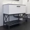 Название: Тумба-умывальник Габариты (ШхВхГ): 910*870*465 мм Варианты цвета корпуса и фасада: Дуб темный Материал корпуса: влагостойкое ЛДСП Варианты цвета каркаса: черный муар Материал каркаса: сталь Комплектация: накладная раковина Comforty 90E Напольная тумба с одним большим выкатным ящиком оборудованным системой плавного закрывания. Фасад и корпус тумбы изготовлены из влагостойкого ДСП, созданного по уникальной технологии «Синхронное тиснение» в декоре «дуб темный». Этот декор при прикосновении дарит ощущение натуральной древесины. В комплекте керамическая раковина с прямоугольной чашей. В основе тумбы - каркас из стального профиля окрашенный черной эмалью с нижней широкой полкой и средней полкой для полотенец. Стильная ручка ящика в том же цвете что и каркас. Тумба подготовлена для подключения водоснабжения снизу. Техническая информация по мебели для ванных комнат Comforty Схема монтажа и подключения коммуникаций