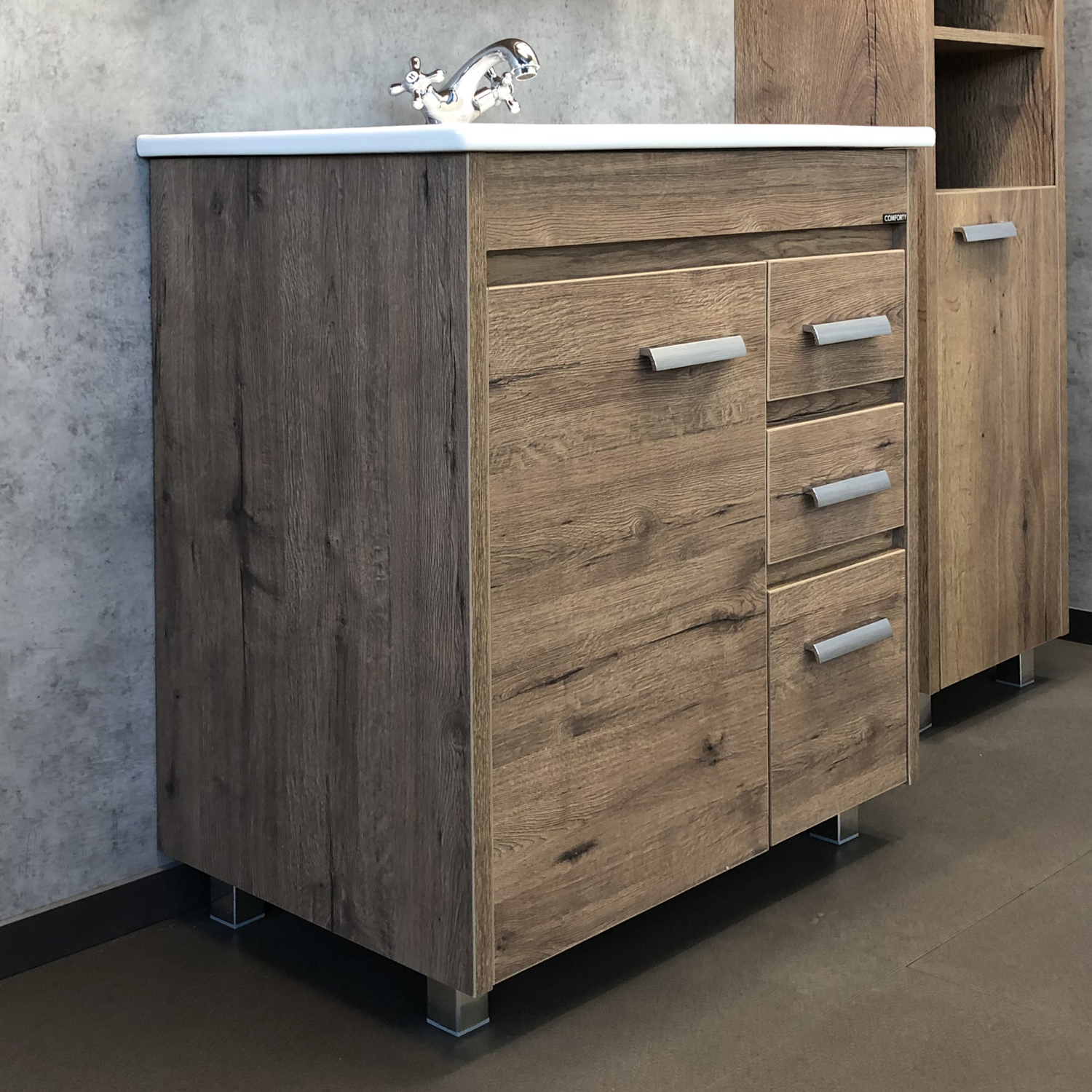 COMFORTY. Тумба-умывальник "Марио-60/75 " дуб дымчатый /сосна с раковиной Quadro 60/75