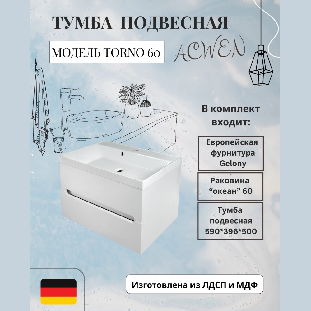 TORNO- это прекрасный выбор для тех, кто ищет функциональную и эстетичную подвесную тумбу для своей ванной комнаты.