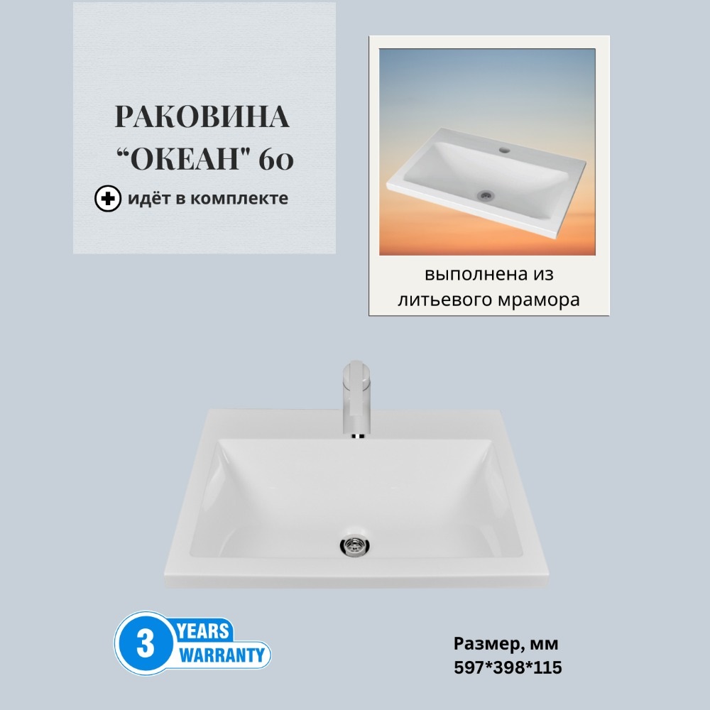 2.Раковина Океан 60 из литьевого мрамора