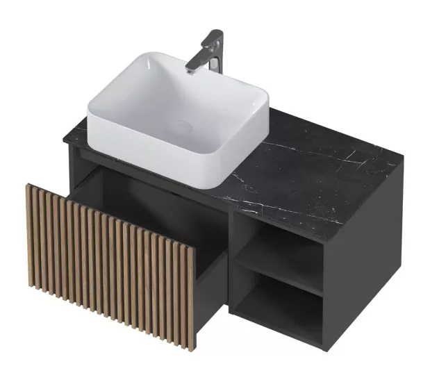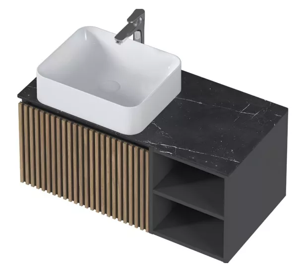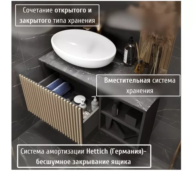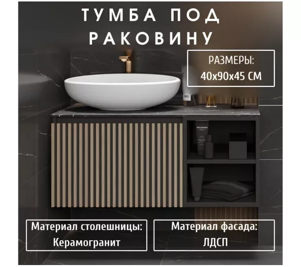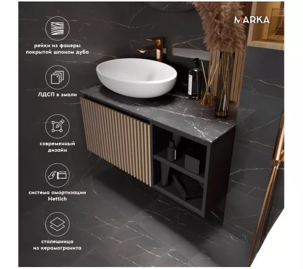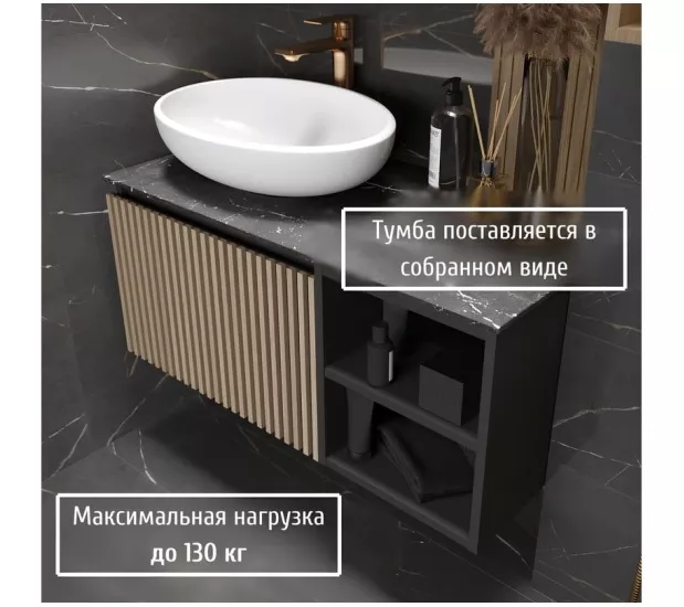 Метод ручной работы обеспечивает не только визуальную привлекательность, но и долговечность изделия. Рейки аккуратно и надежно прикреплены к фасаду, создавая эффект структуры и объема. Изготавливаемая из ЛДСП в эмале и керамогранитной столешницы, тумба Rail обладает отличными эксплуатационными характеристиками. Материал пропитан водоотталкивающим средством, что гарантирует защиту от влаги и увеличивает срок службы мебели.