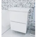 Мебель выполнена в современном минималистичном стиле, для которого характерны правильные геометрические формы, рациональность и эргономичность. Специально продуманная конструкция без ручек позволяет создать цельный легкий образ, не утяжеленный фурнитурой и дает возможность гармонично вписаться в любой интерьер. Для бережливой повседневной эксплуатации, тумбы оснащены демпферами обеспечивающими бесшумное и мягкое закрывание.