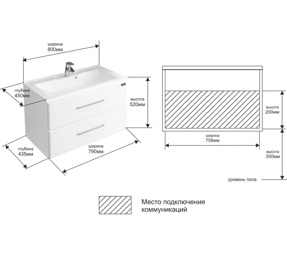 Тумба подвесная "Омега-80" 2 ящика, без раковины