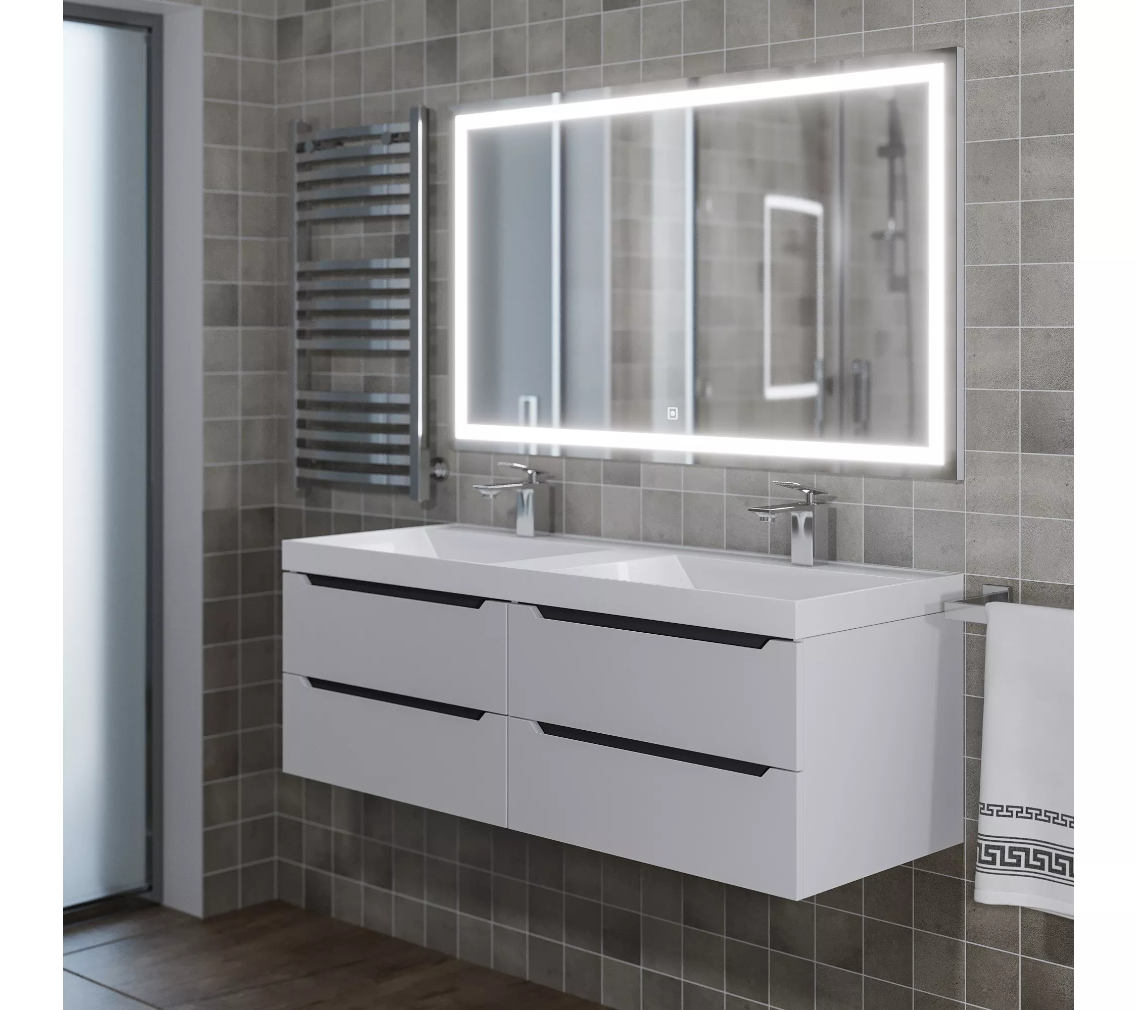 Чтобы собрать полноценный комплект мебели, рекомендуем приобрести зеркало с подсветкой из коллекции Uperwood Tanos шириной 120 см и высотой 70 см (арт. 291020273) или 80 см (арт. 291020272).