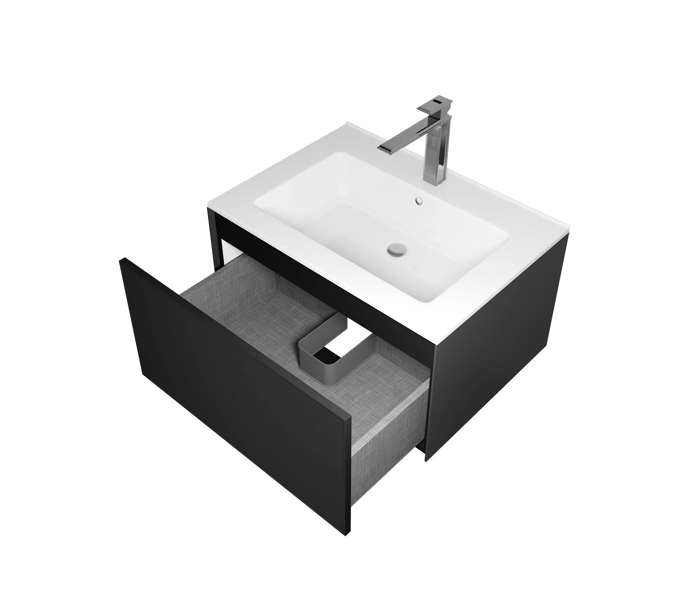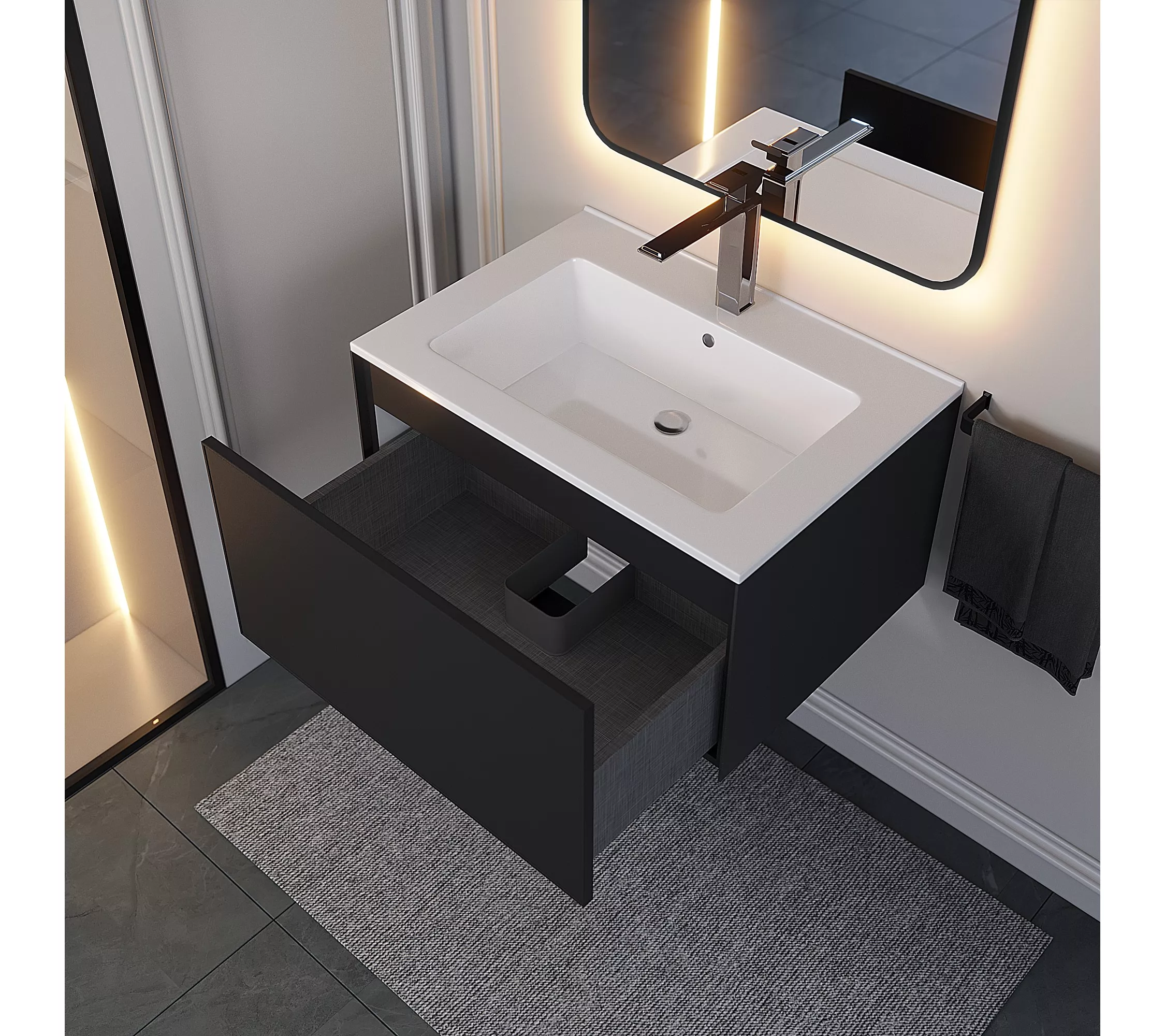 Премиальная коллекция мебели для ванных комнат Parma Premium от бренда Uperwood представлена подвесными тумбами шириной 65, 75 и 85 см в черном и белом цвете.