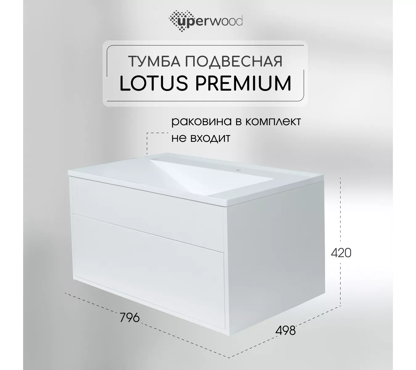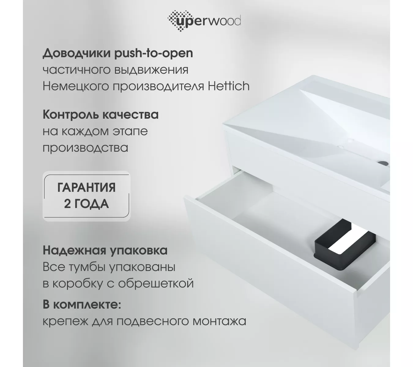 Коллекция тумб представлена в двух размерах под раковины Uperwood Lotus и Uperwood Lotus Quartz 80 и 100 см шириной.