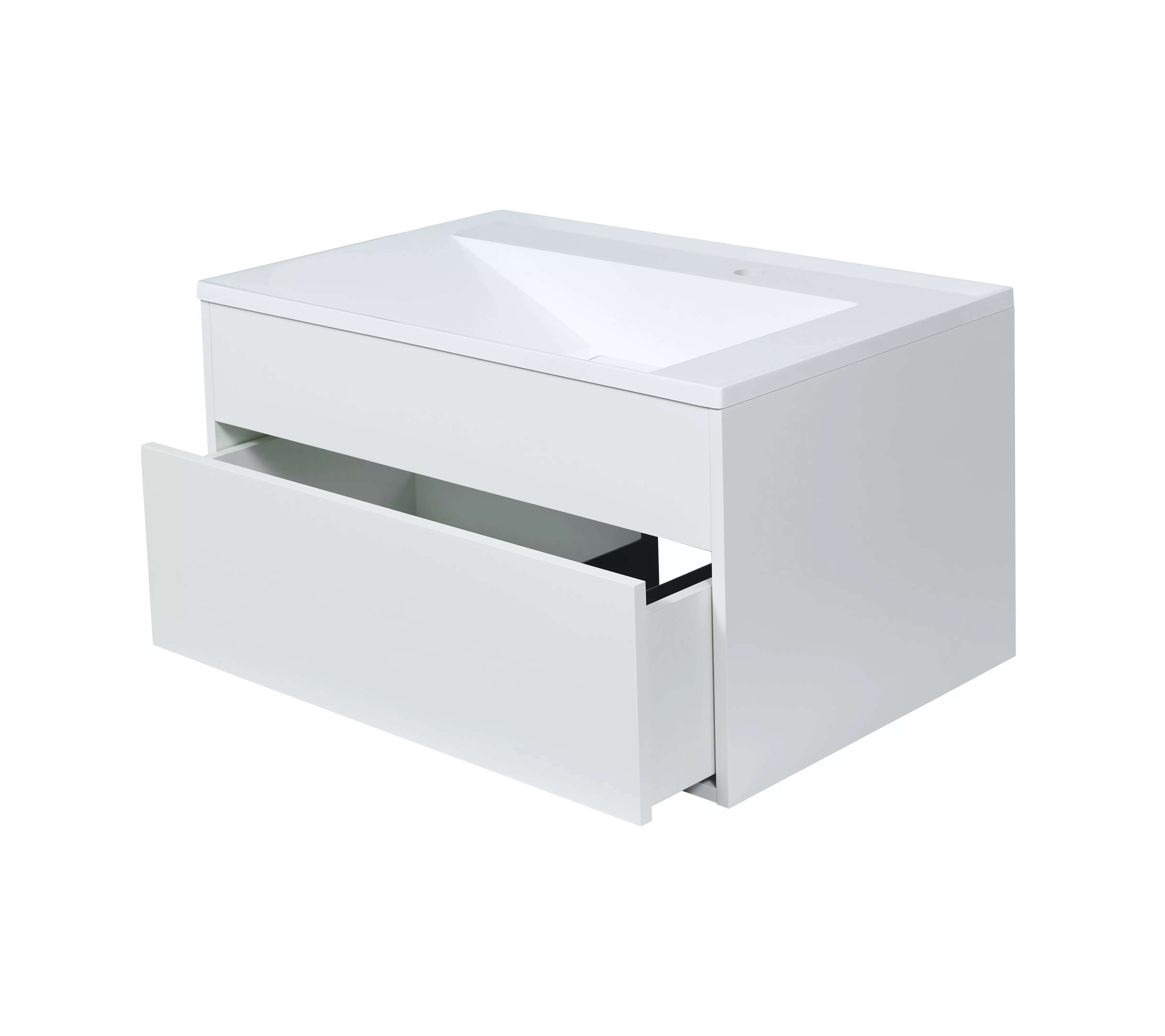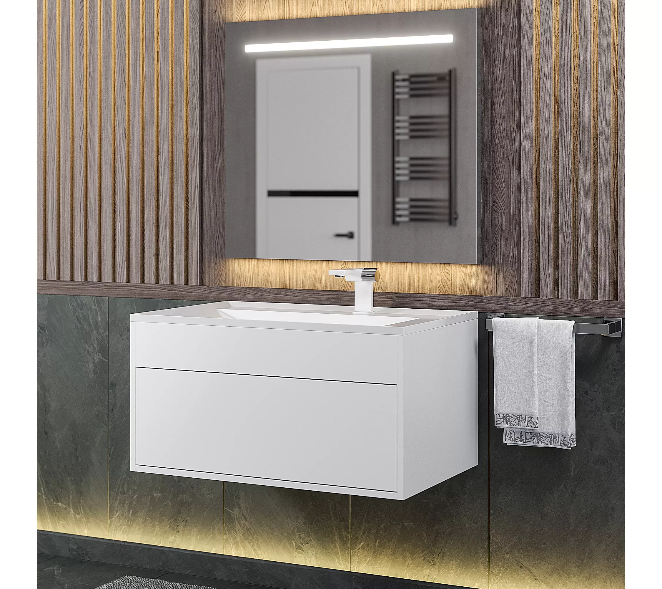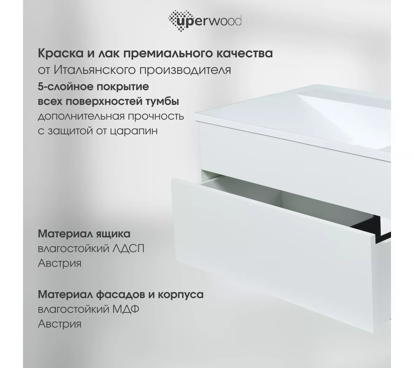 Подвесная тумба для ванной комнаты с выдвижным ящиком от бренда Uperwood из коллекции Lotus шириной 79,6 см подходит под раковину Uperwood Lotus шириной 80 см и представляет собой функциональное, надежное и практичное решение, которое отлично впишется в любой современный дизайн ванной комнаты.