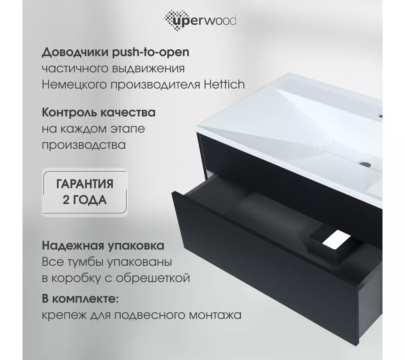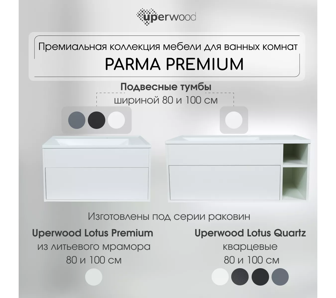 Коллекция тумб представлена в двух размерах под раковины Uperwood Lotus и Uperwood Lotus Quartz 80 и 100 см шириной.