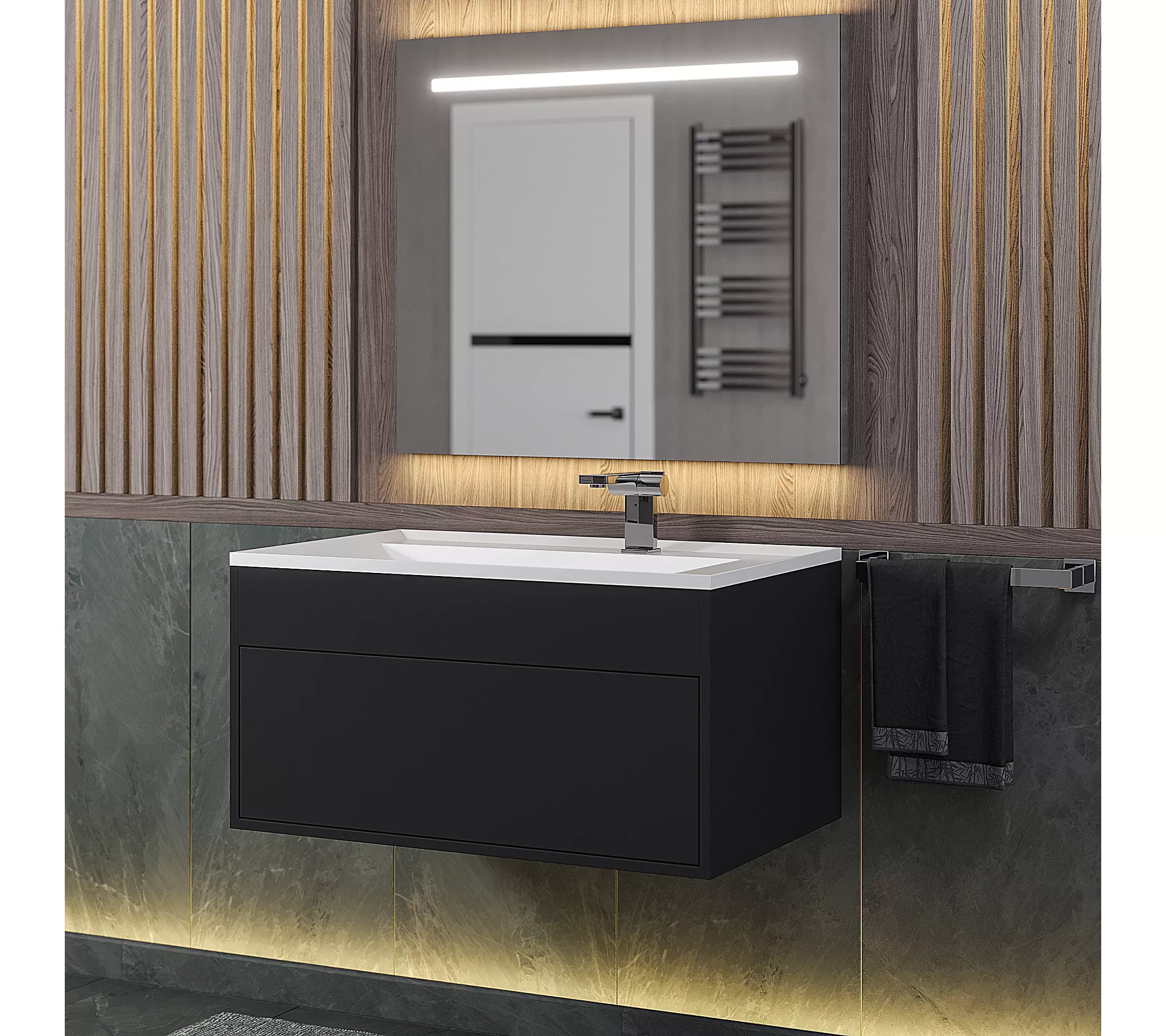 Подвесная тумба для ванной комнаты с выдвижным ящиком от бренда Uperwood из коллекции Lotus шириной 79,6 см подходит под раковину Uperwood Lotus шириной 80 см и представляет собой функциональное, надежное и практичное решение, которое отлично впишется в любой современный дизайн ванной комнаты.