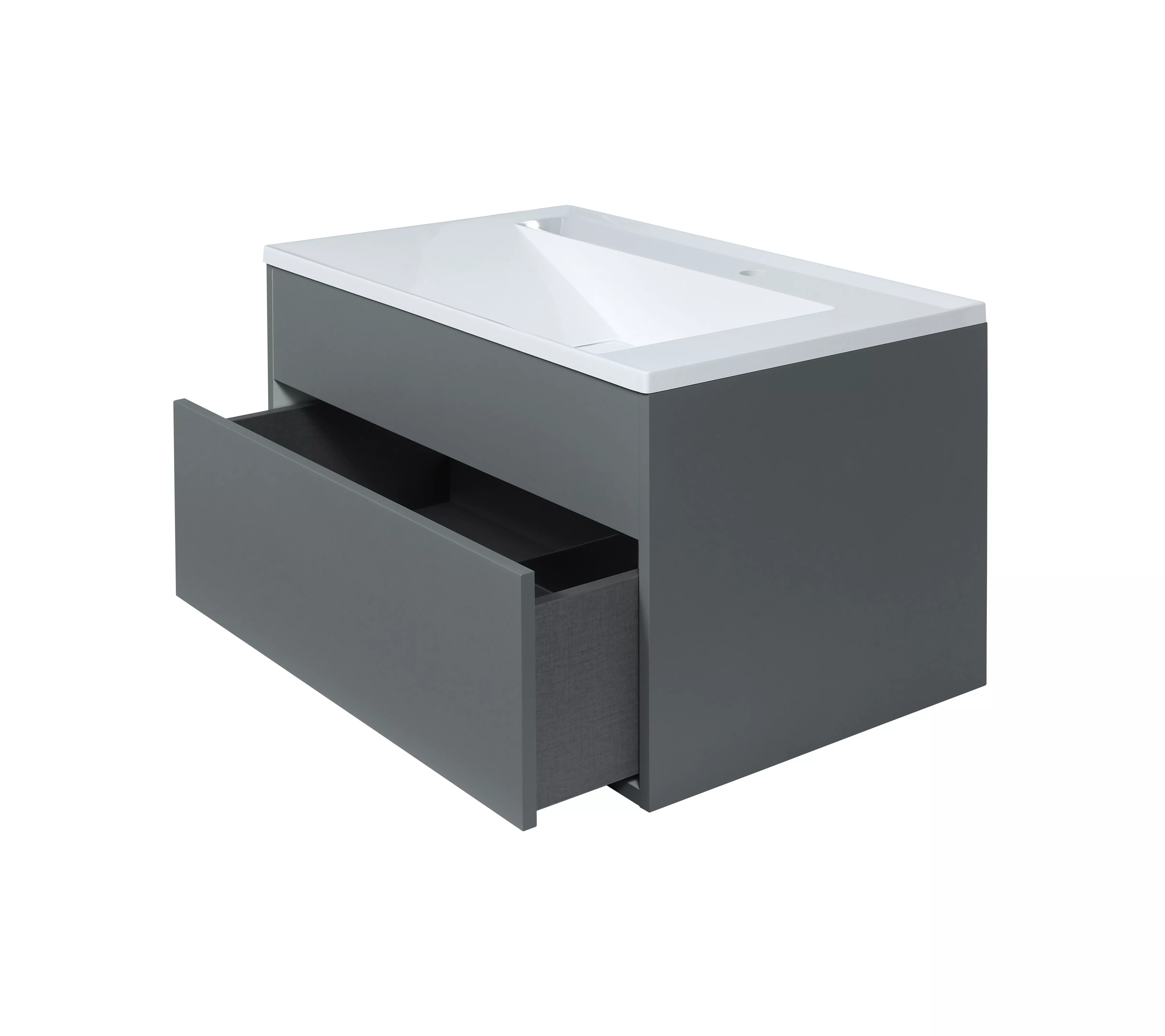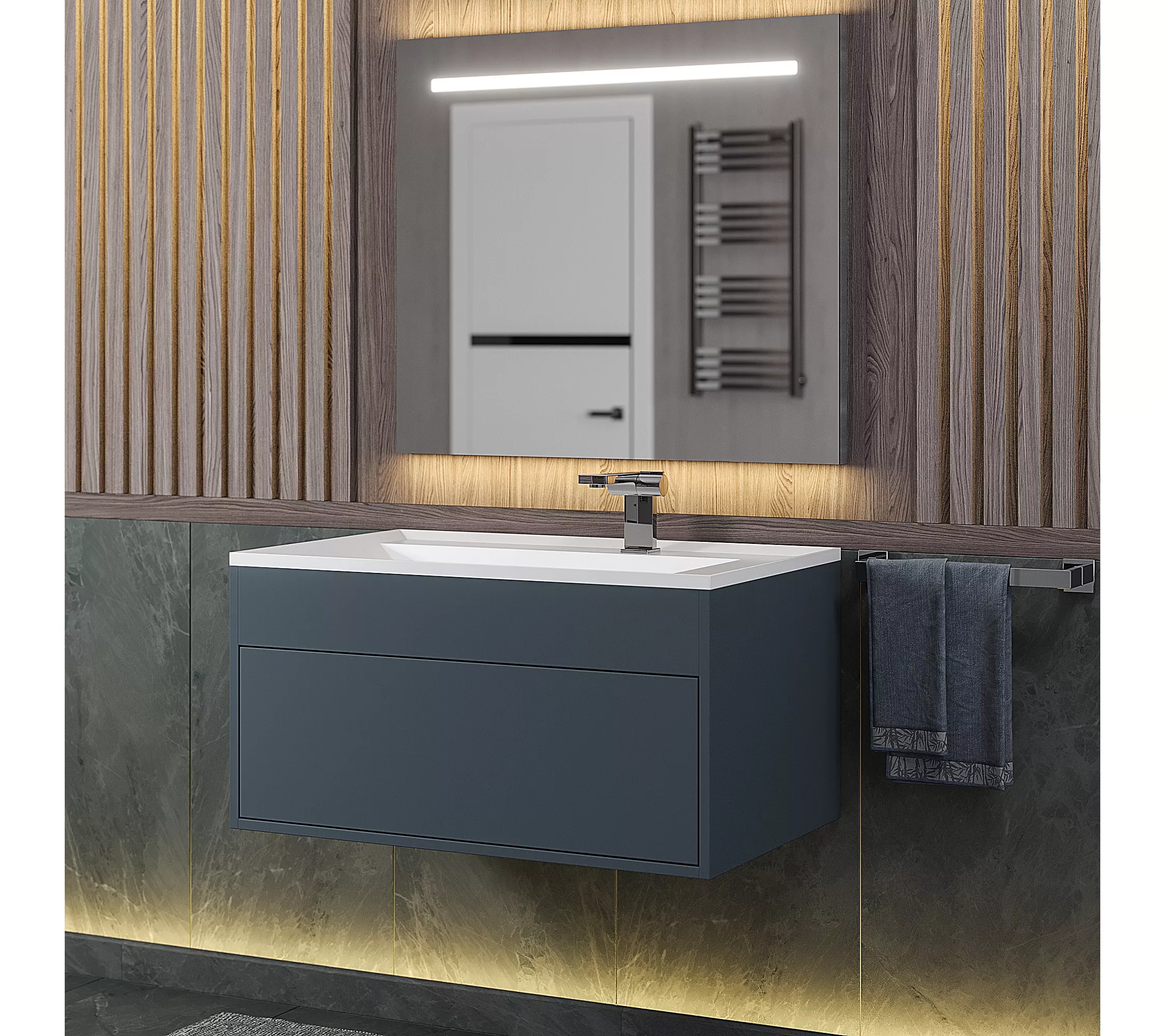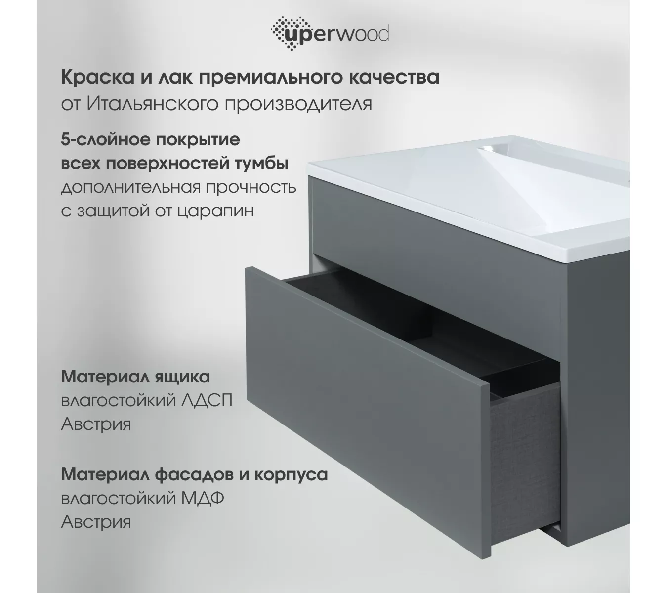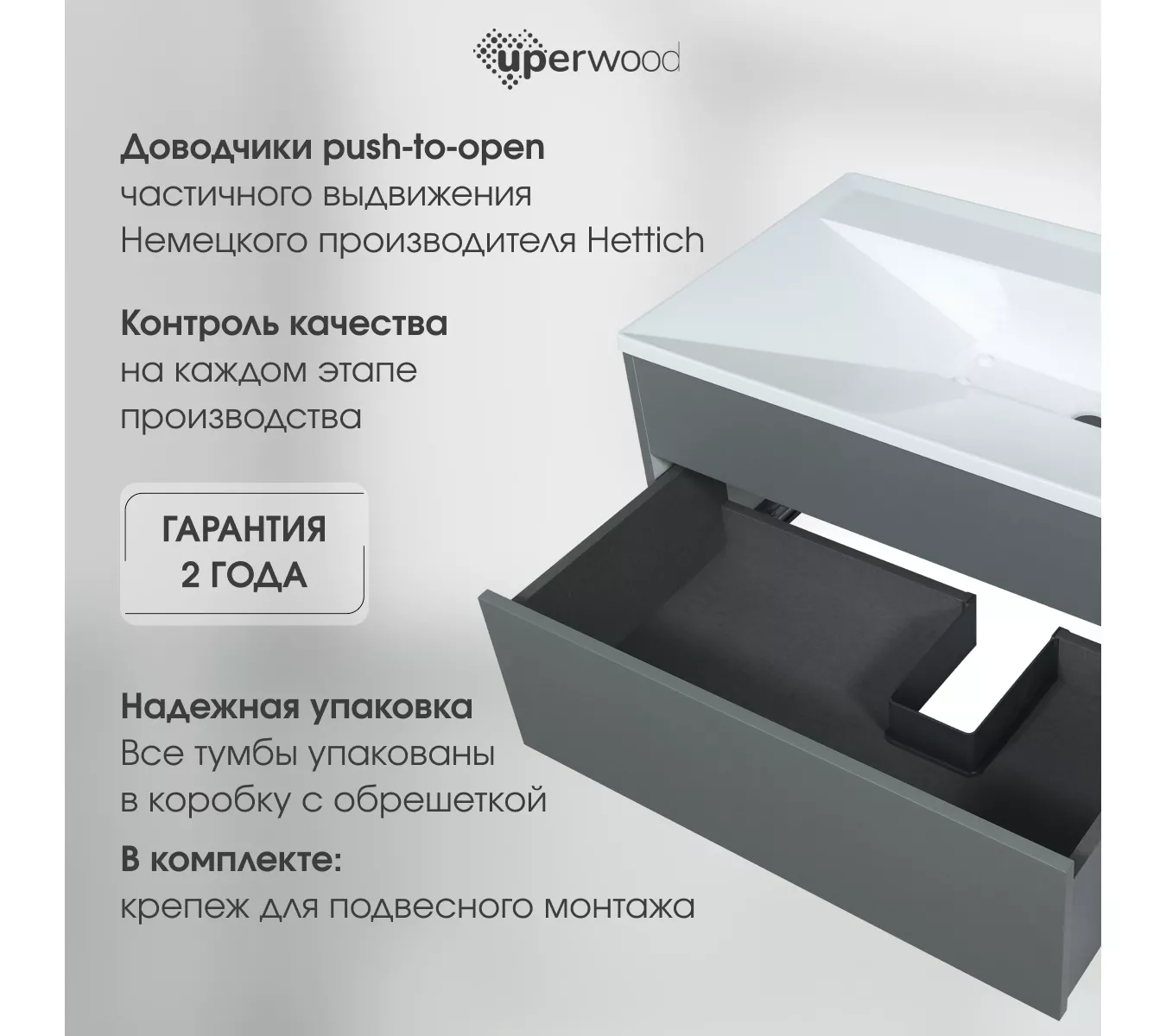 Подвесная тумба для ванной комнаты с выдвижным ящиком от бренда Uperwood из коллекции Lotus шириной 79,6 см подходит под раковину Uperwood Lotus шириной 80 см и представляет собой функциональное, надежное и практичное решение, которое отлично впишется в любой современный дизайн ванной комнаты.