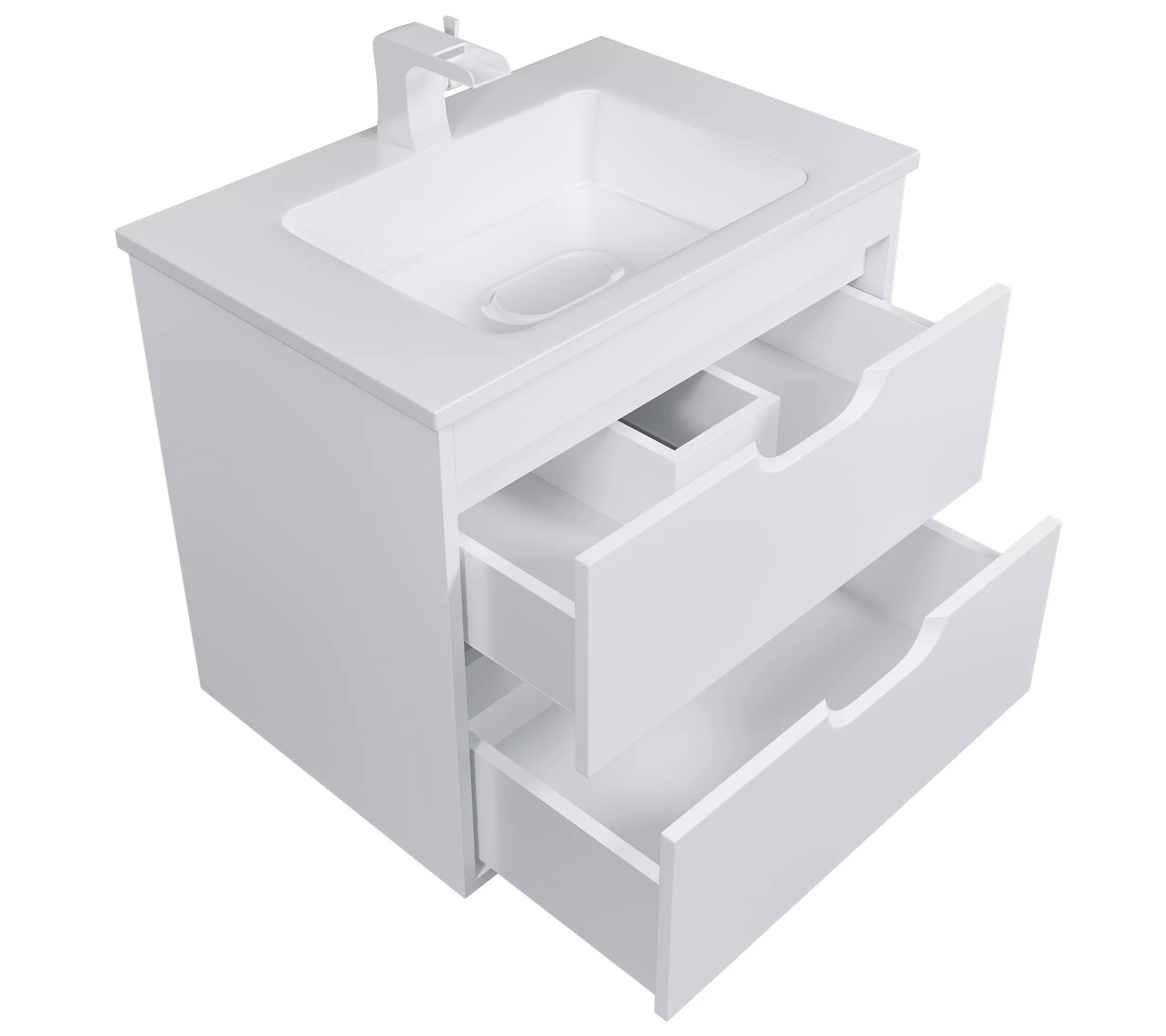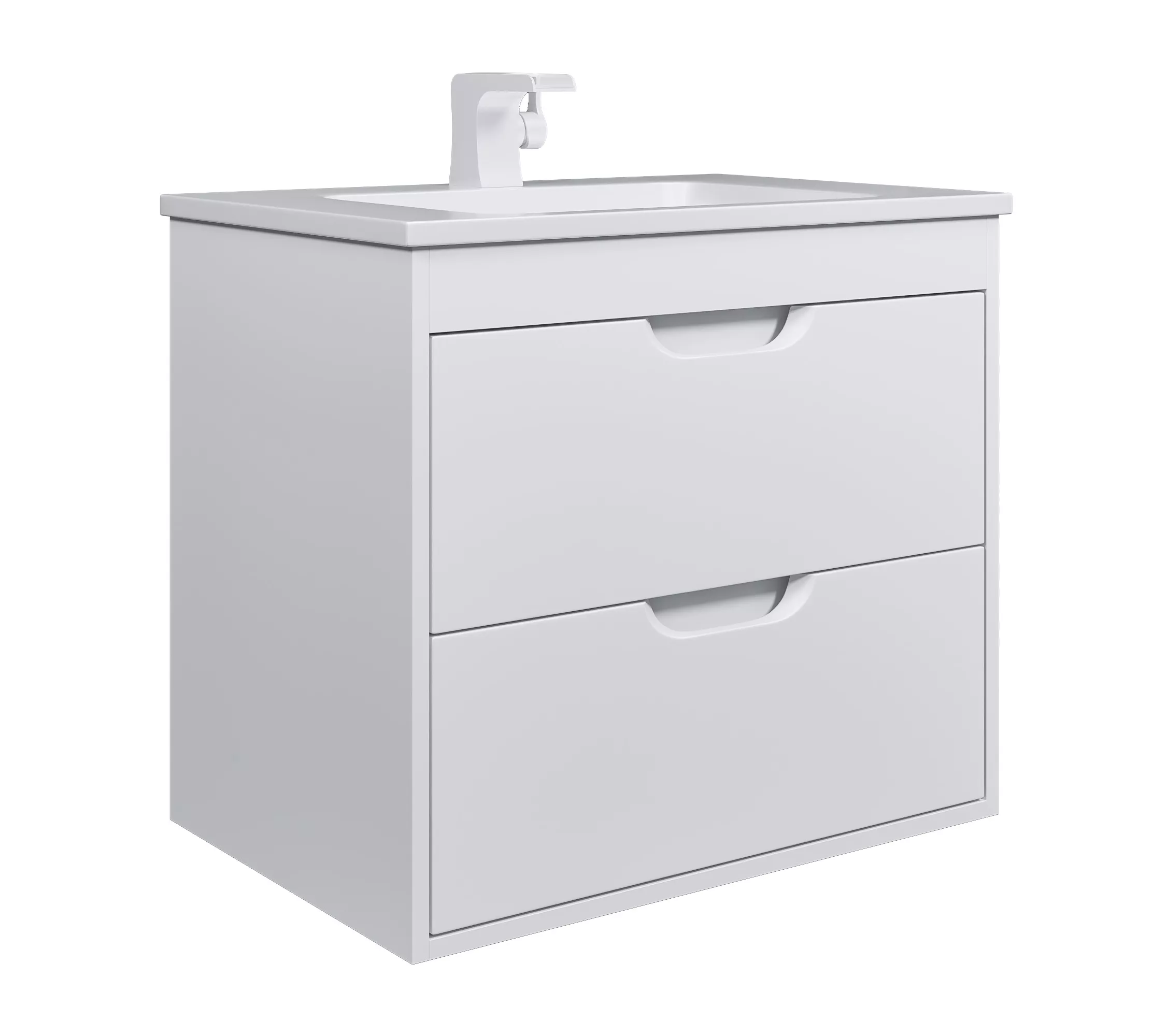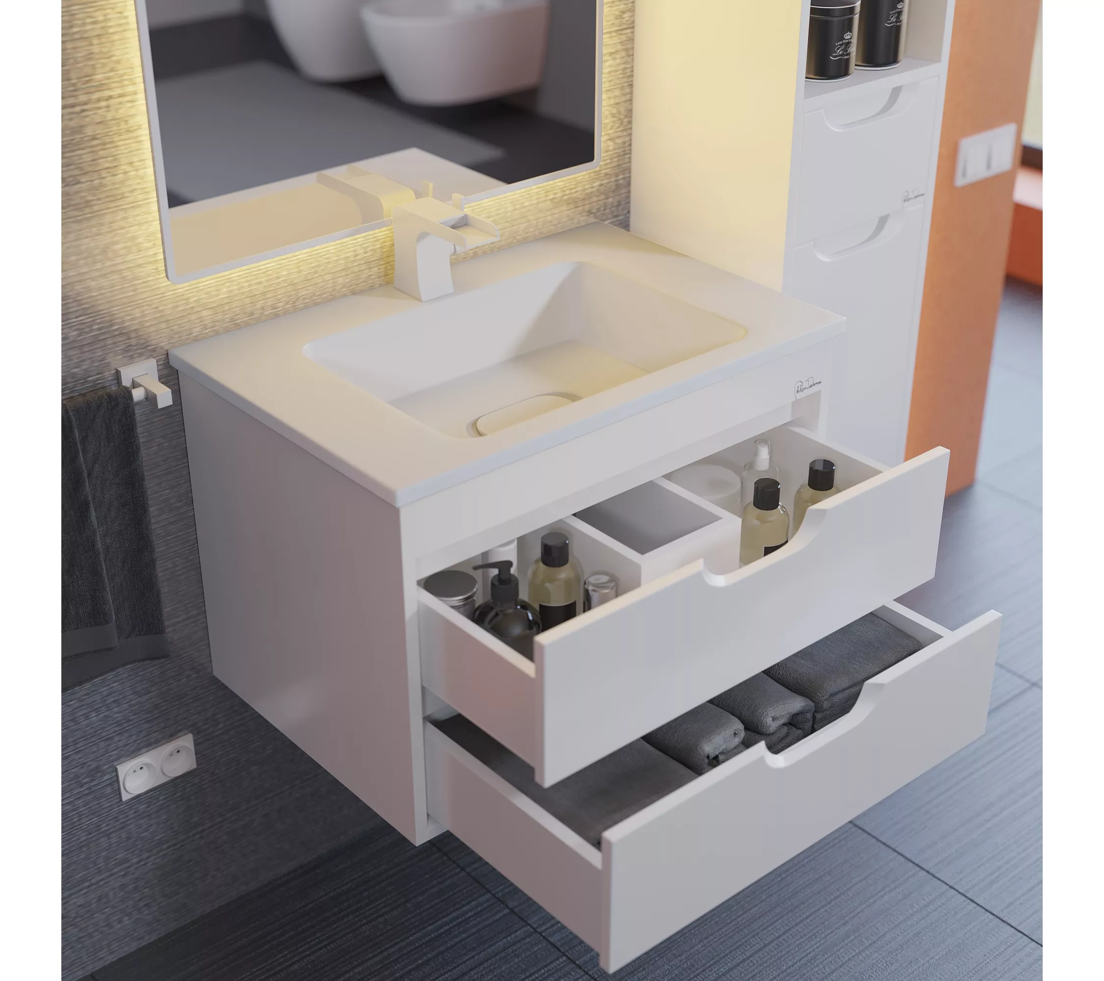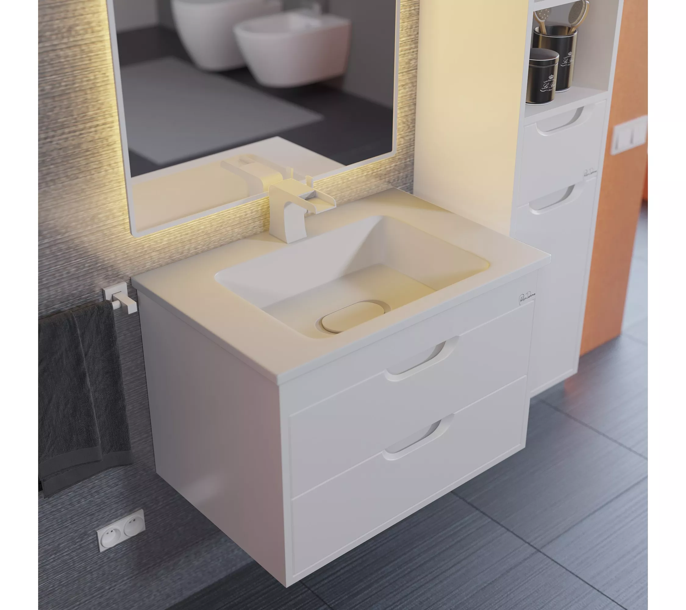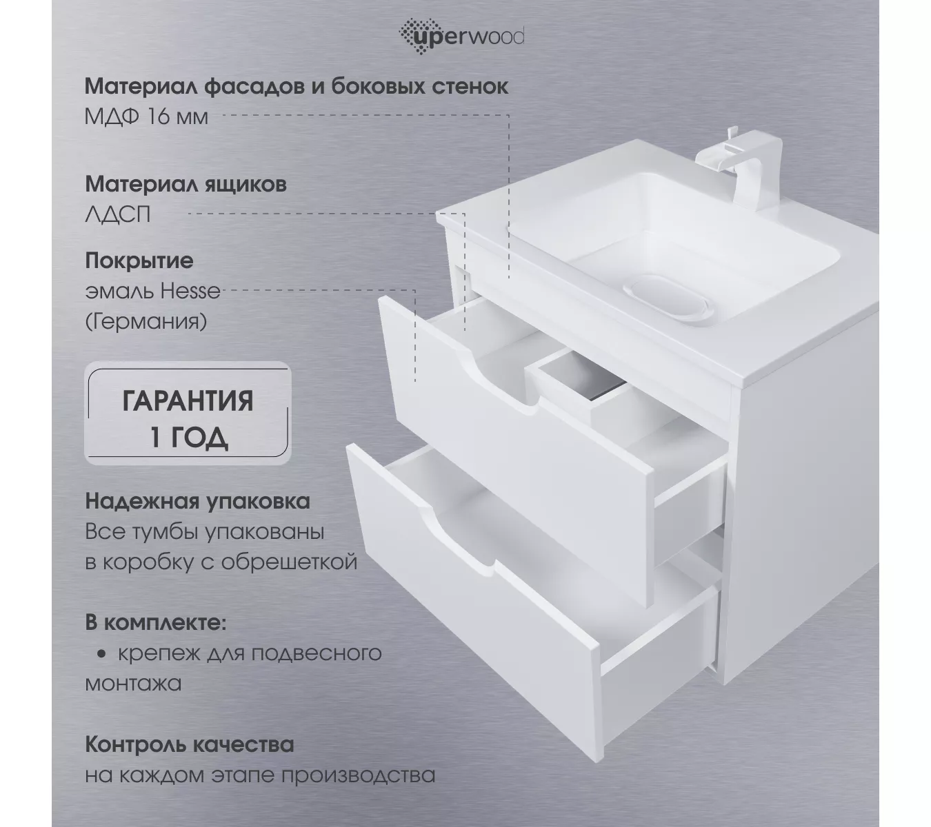 К тумбам Uperwood Modul подходят полувстраиваемые раковины из коллекции Uperwood Modul, выполненные из литьевого мрамора. Раковина подбирается строго под размер тумбы.