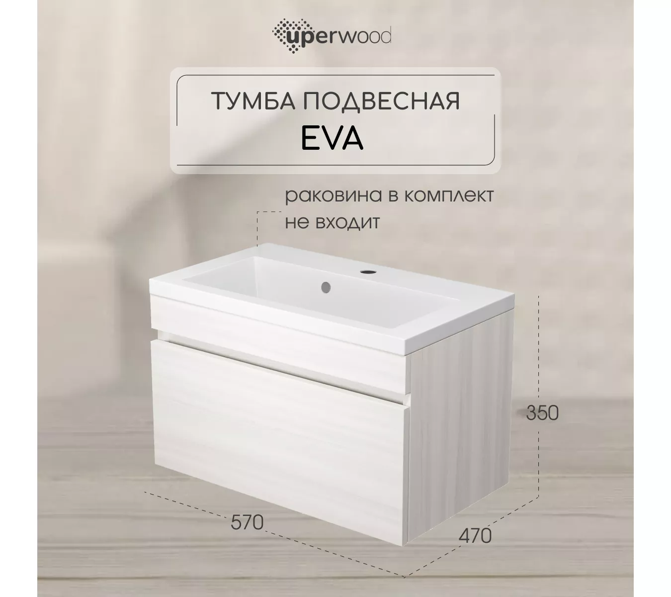 Подвесная тумба под раковину для ванной комнаты от бренда Uperwood из коллекции Eva - это функциональное, надежное и практичное решение, которое отлично впишется в любой современный интерьер ванной комнаты.