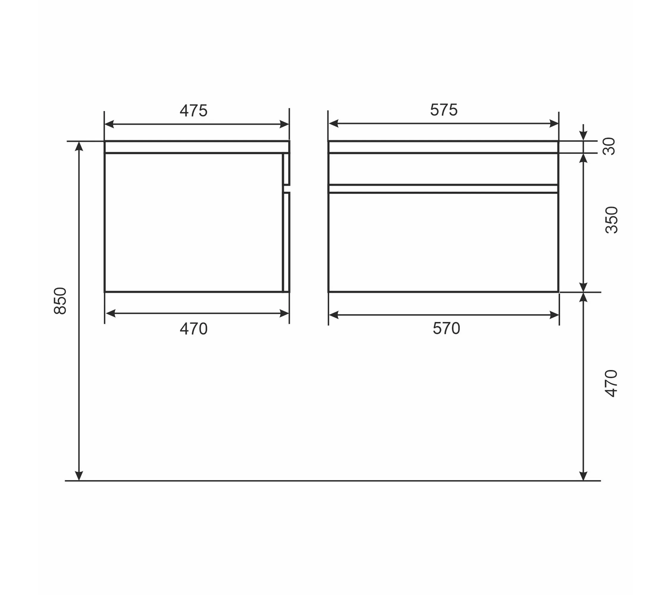 Размерный ряд тумб под раковину представлен моделями шириной 50 см (с распашными дверцами), 60 и 75 см (с выдвижным ящиком).