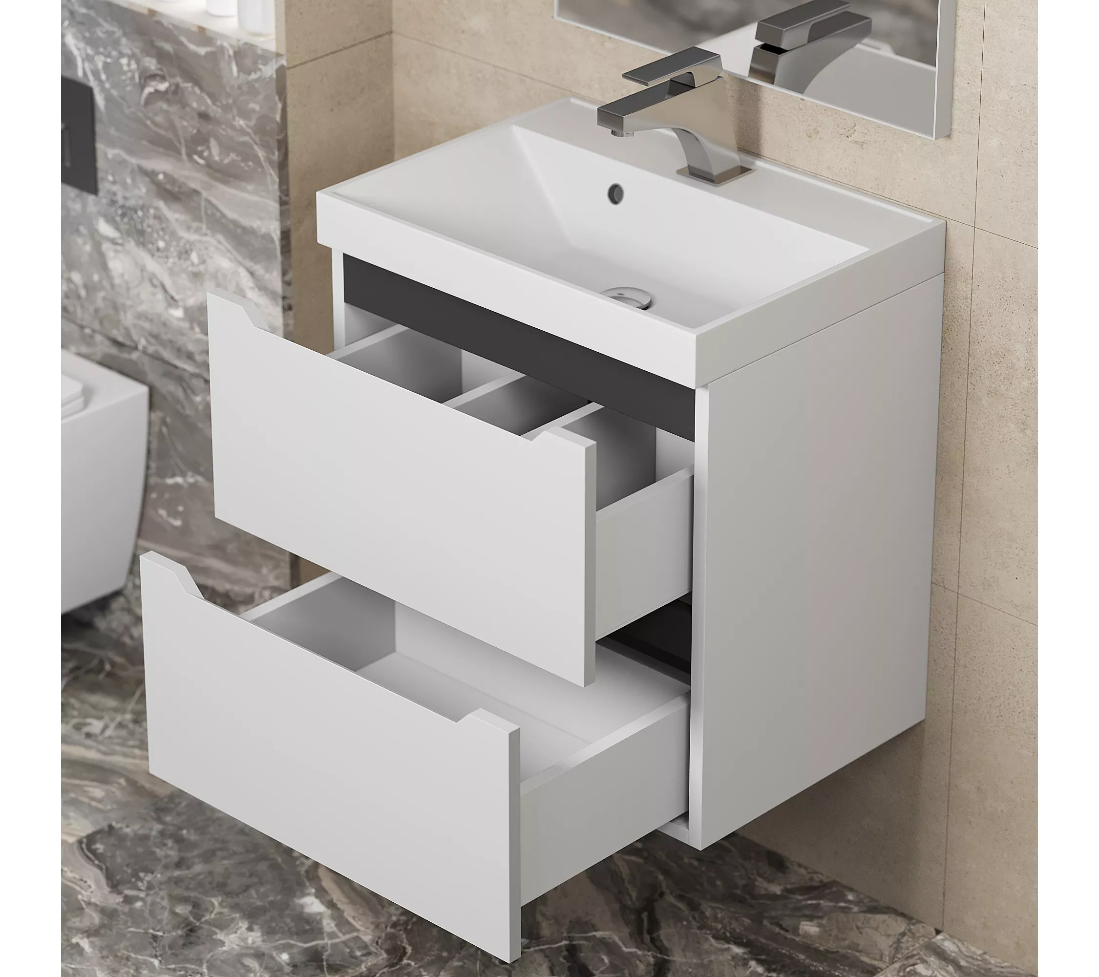 Подвесная тумба под раковину для ванной Uperwood Tanos с двумя выдвижными ящиками представляет собой функциональное, надежное и практичное решение, которое отлично впишется в любой современный дизайн ванной комнаты.