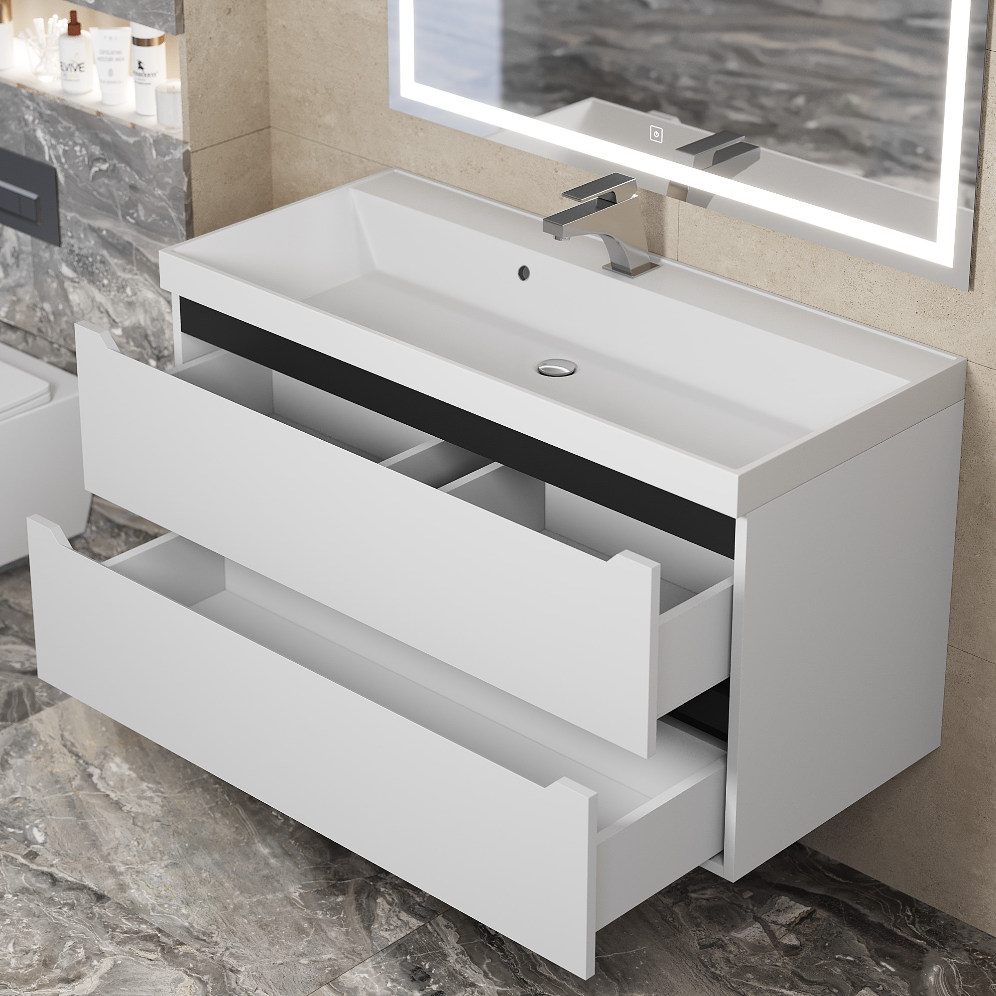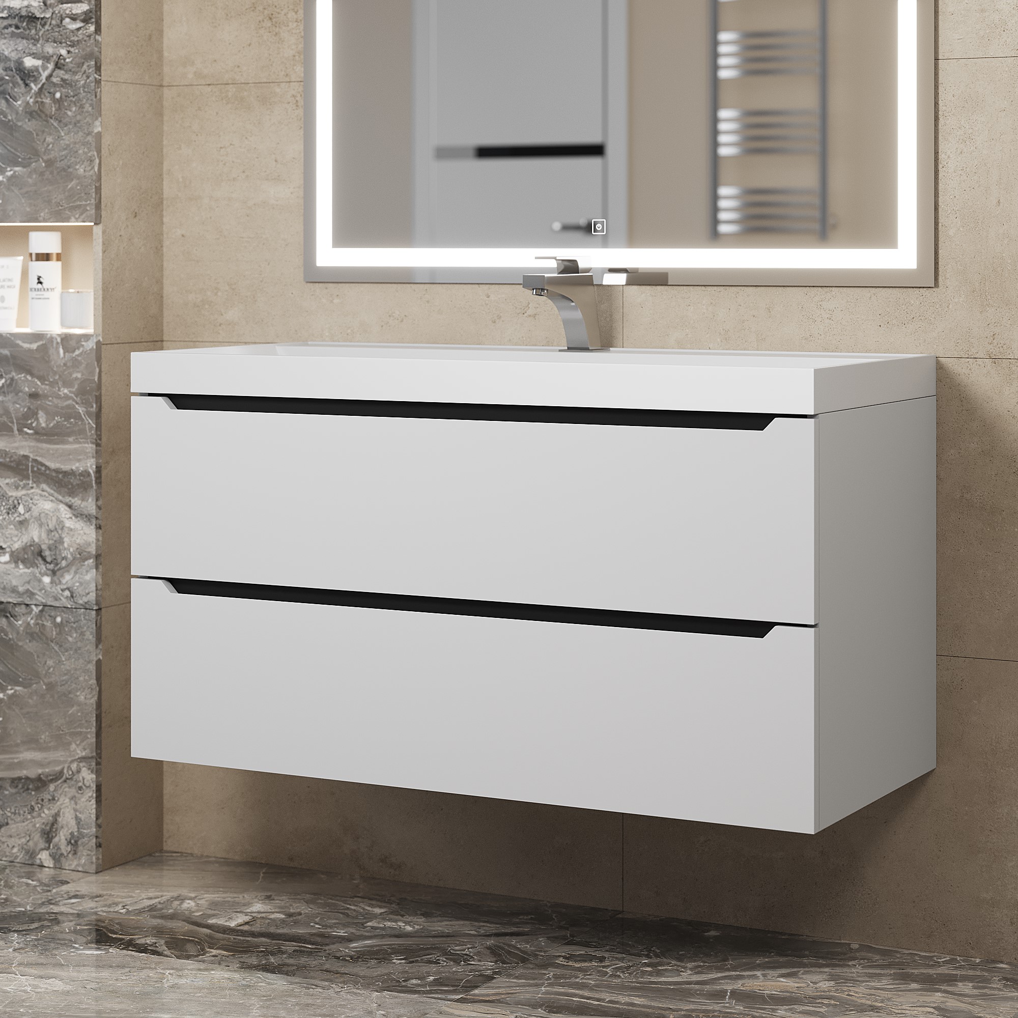 Подвесная тумба под раковину для ванной Uperwood Tanos с двумя выдвижными ящиками представляет собой функциональное, надежное и практичное решение, которое отлично впишется в любой современный дизайн ванной комнаты.