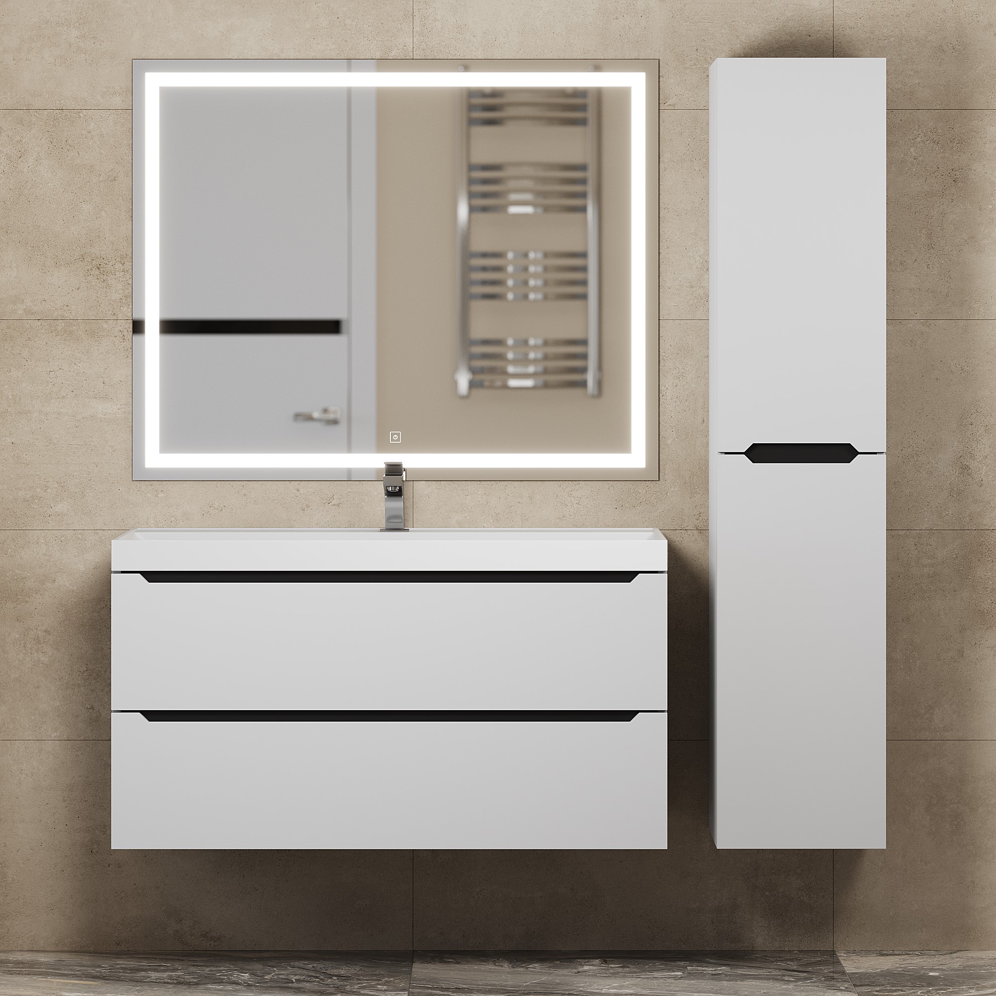 Элегантный минималистичный дизайн тумбы дополняет ее безупречная матовая поверхность.