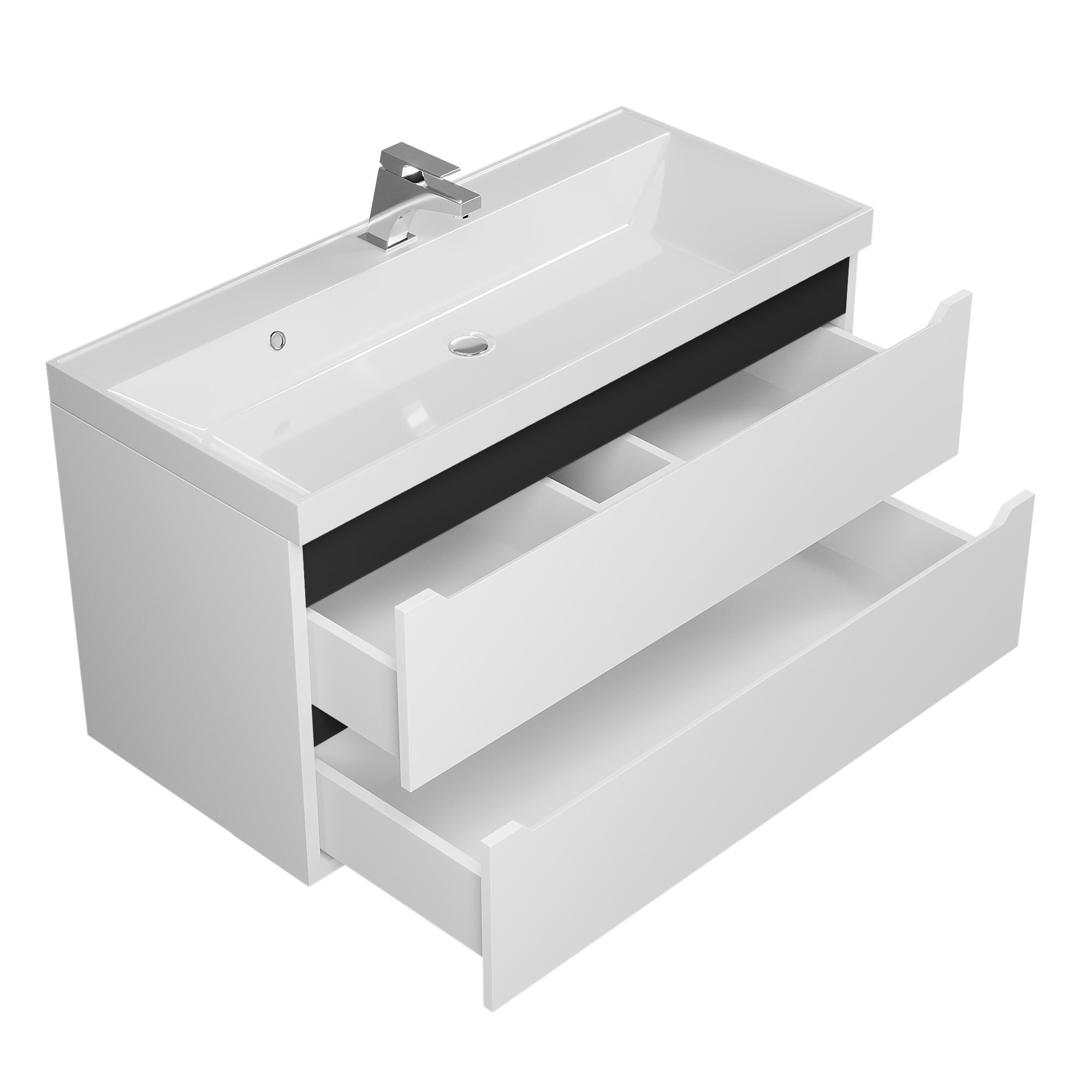 Размерный ряд тумб под раковину Tanos представлен моделями от 40 до 100 см в цветовых решениях: белый матовый, белый матовый с графитовыми вставками, черный матовый.