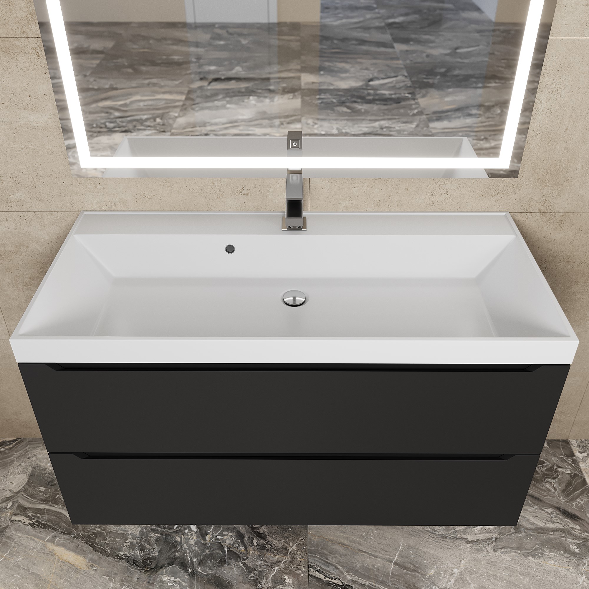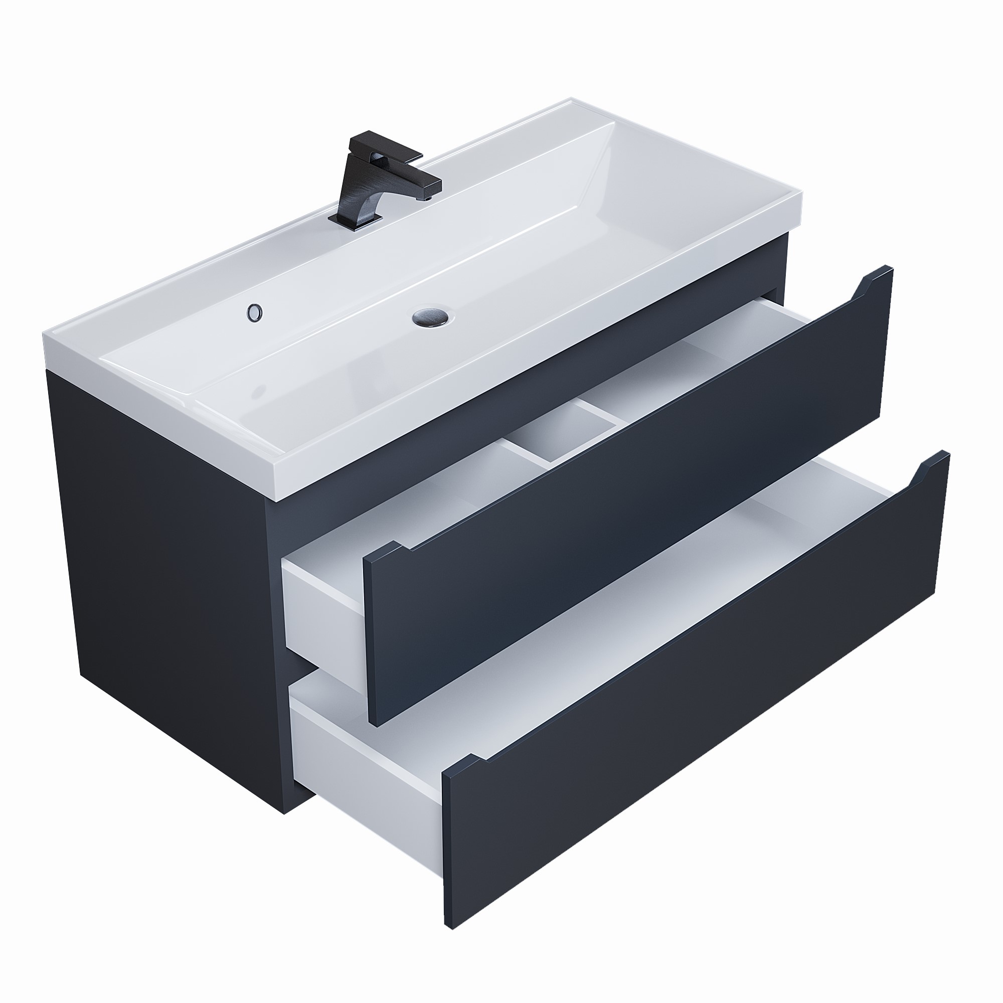 Размерный ряд тумб под раковину Tanos представлен моделями от 40 до 100 см в цветовых решениях: белый матовый, белый матовый с графитовыми вставками, черный матовый.