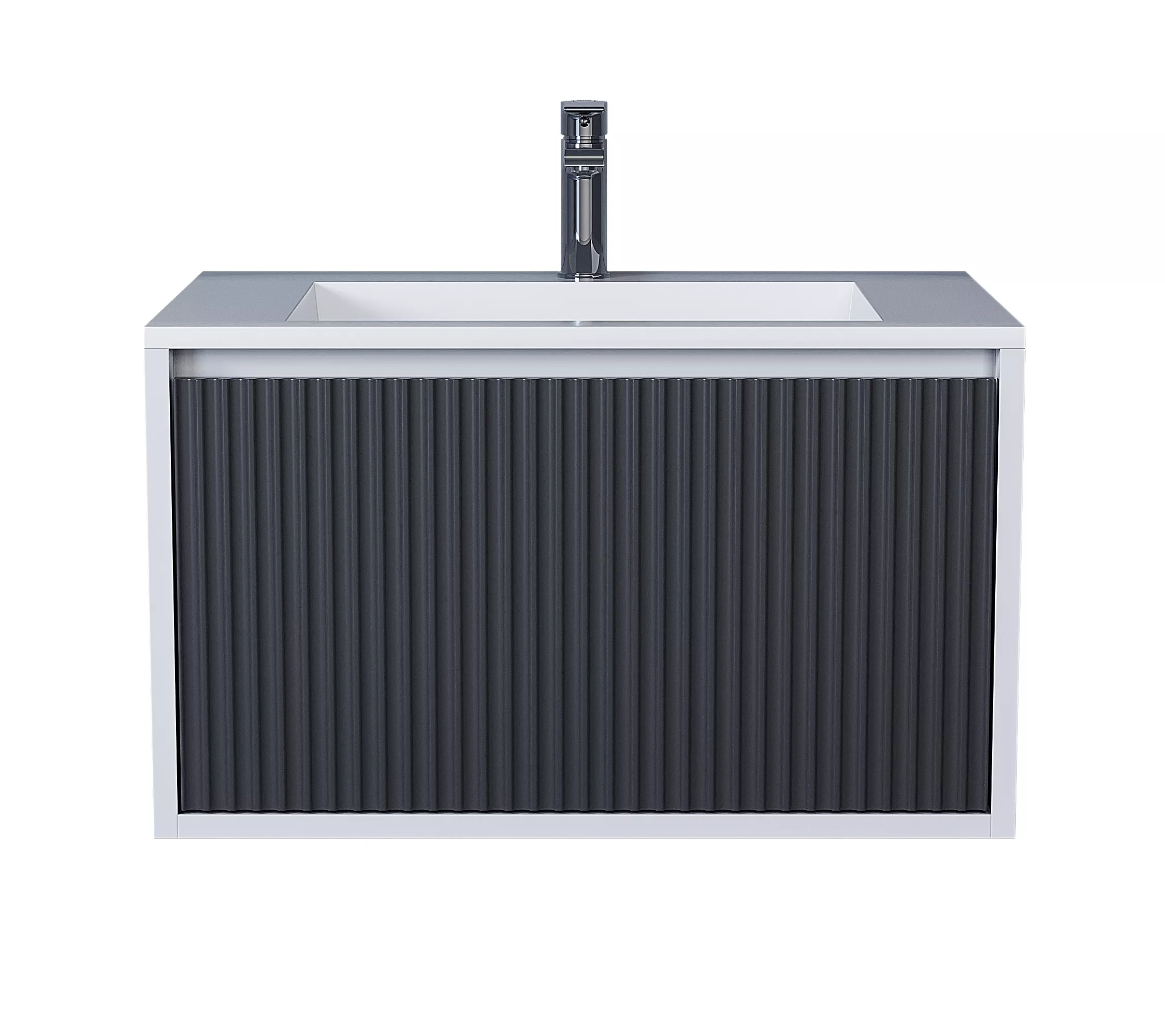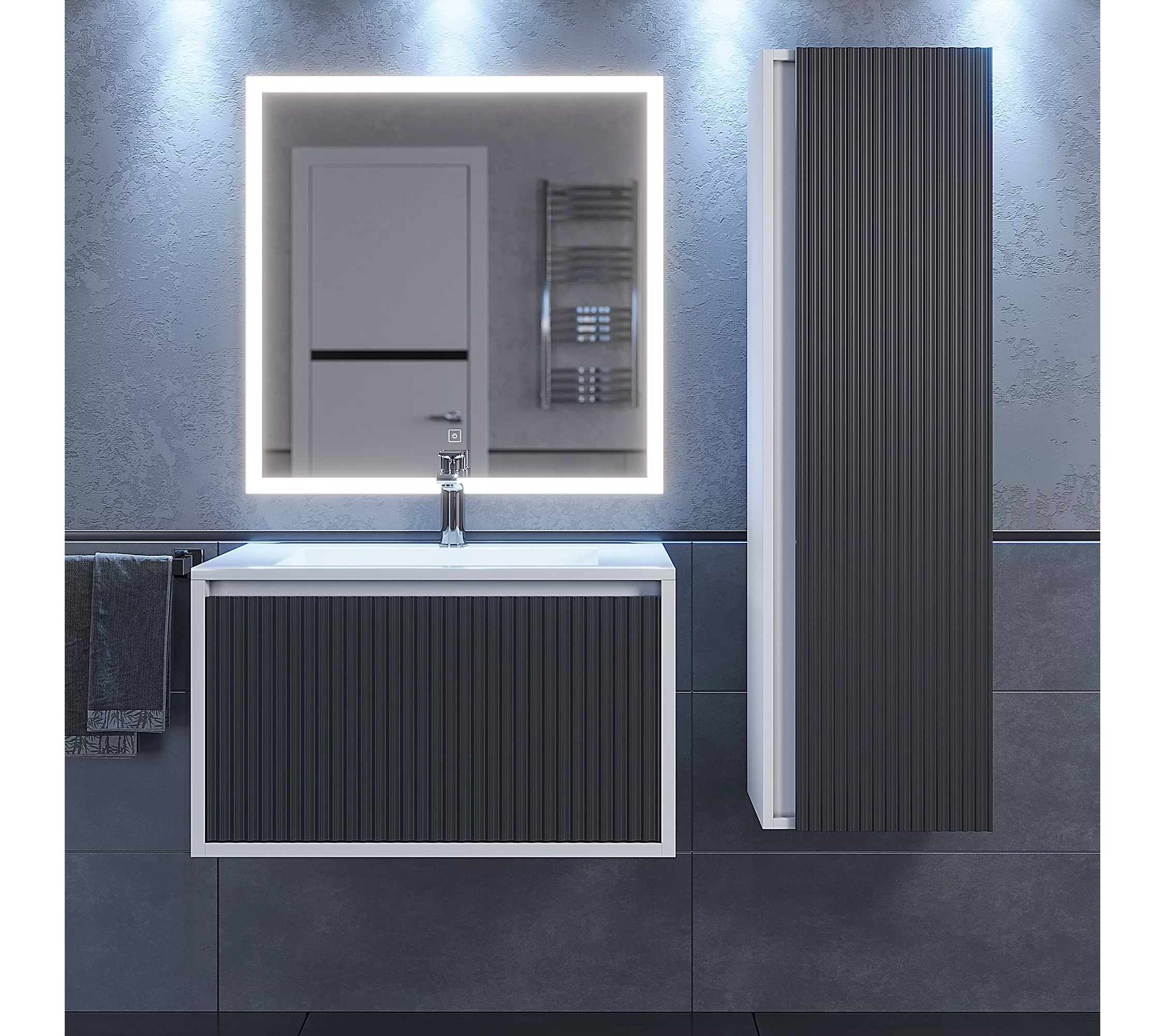 Цветовые решения тумб Uperwood Next: белая матовая и белая/графит в матовом исполнении (графитовый фасад и белые боковины).