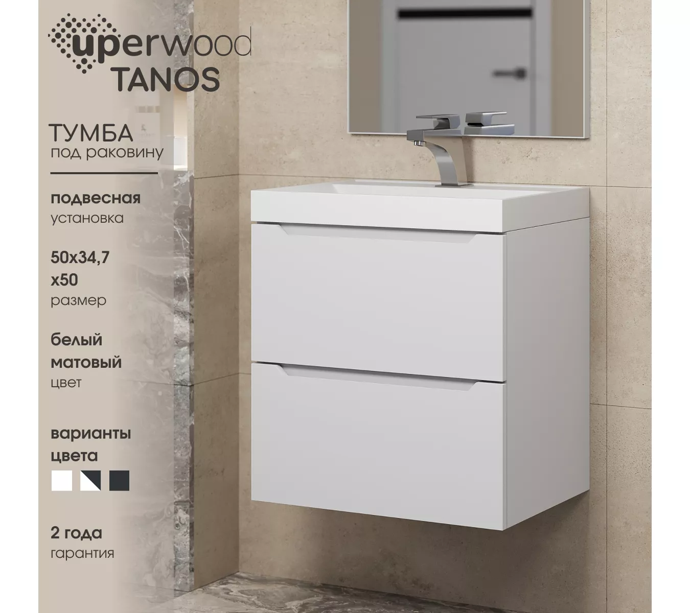 Для тумб Uperwood Tanos подходят раковины из серии Uperwood Classic, Classic Quartz, Classic New, соответствующие ширине тумб.