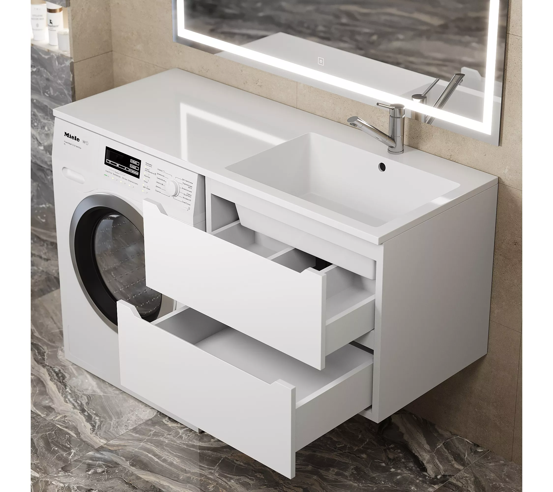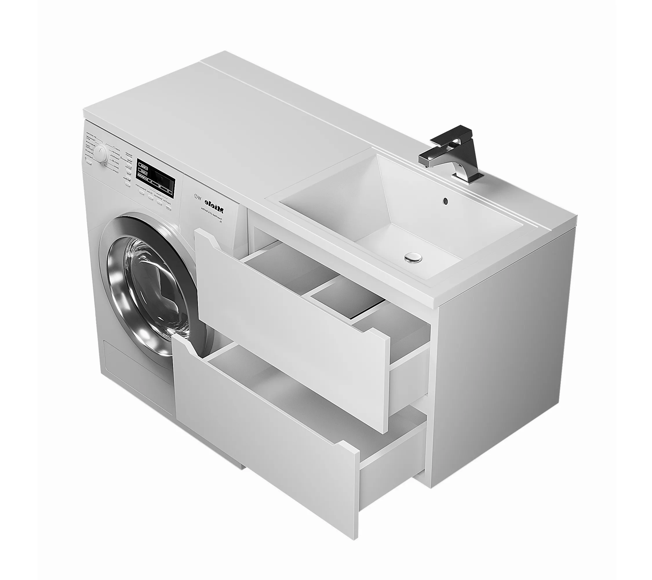 Тумба идеально подходит для размещения со стиральной машиной благодаря своим оптимальным размерам и продуманному дизайну. Она не только обеспечивает удобный доступ к бытовой технике, но и служит стильной основой для раковины, благодаря чему вы сможете создать гармоничный ансамбль, который украсит любую ванную.