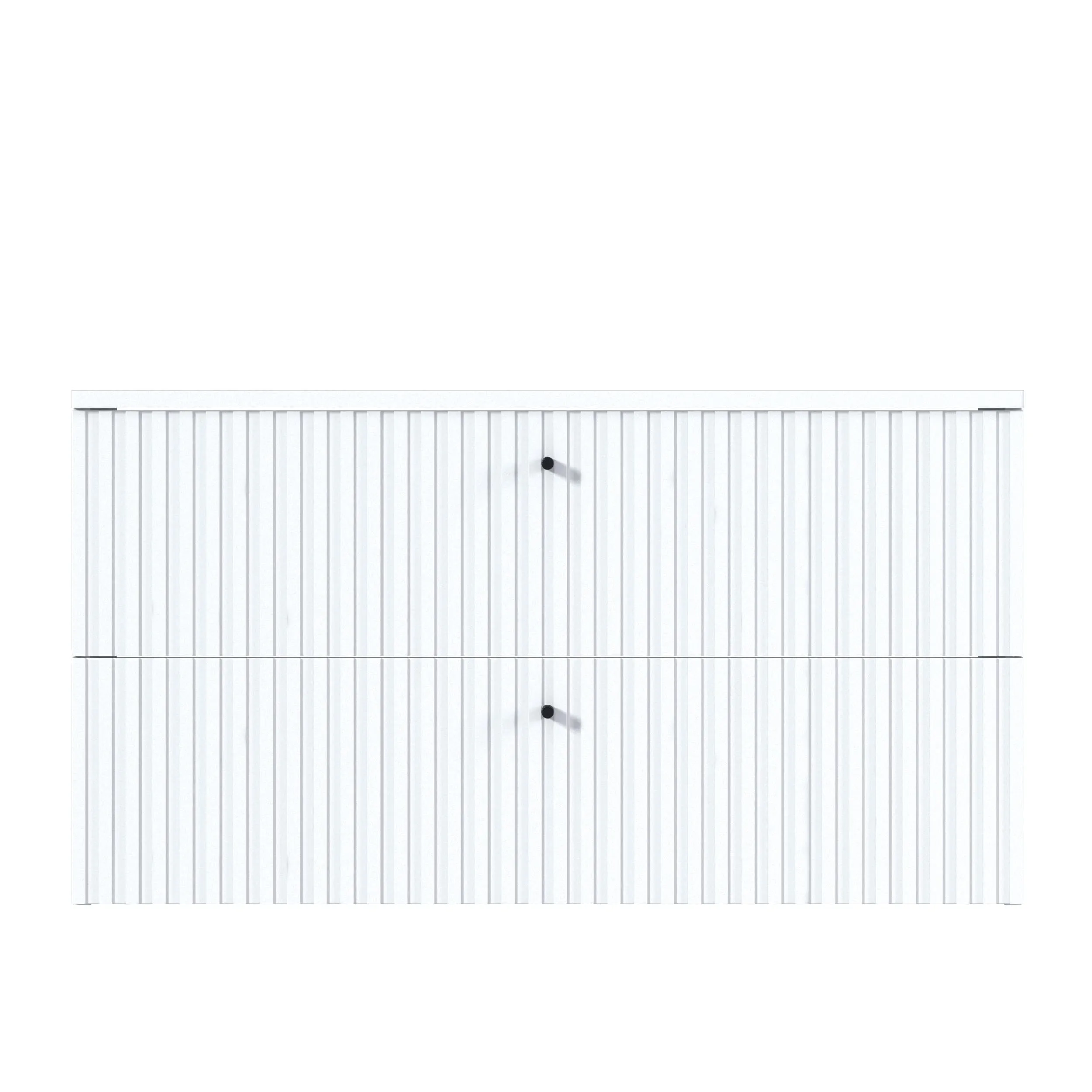 Тумба Desire – изящное решение для интерьера ванной комнаты. Рельефный фасад создает ритмичную игру света и теней. Черные ручки-кнопки контрастируют с белым фасадом и подчеркивают её современный дизайн.