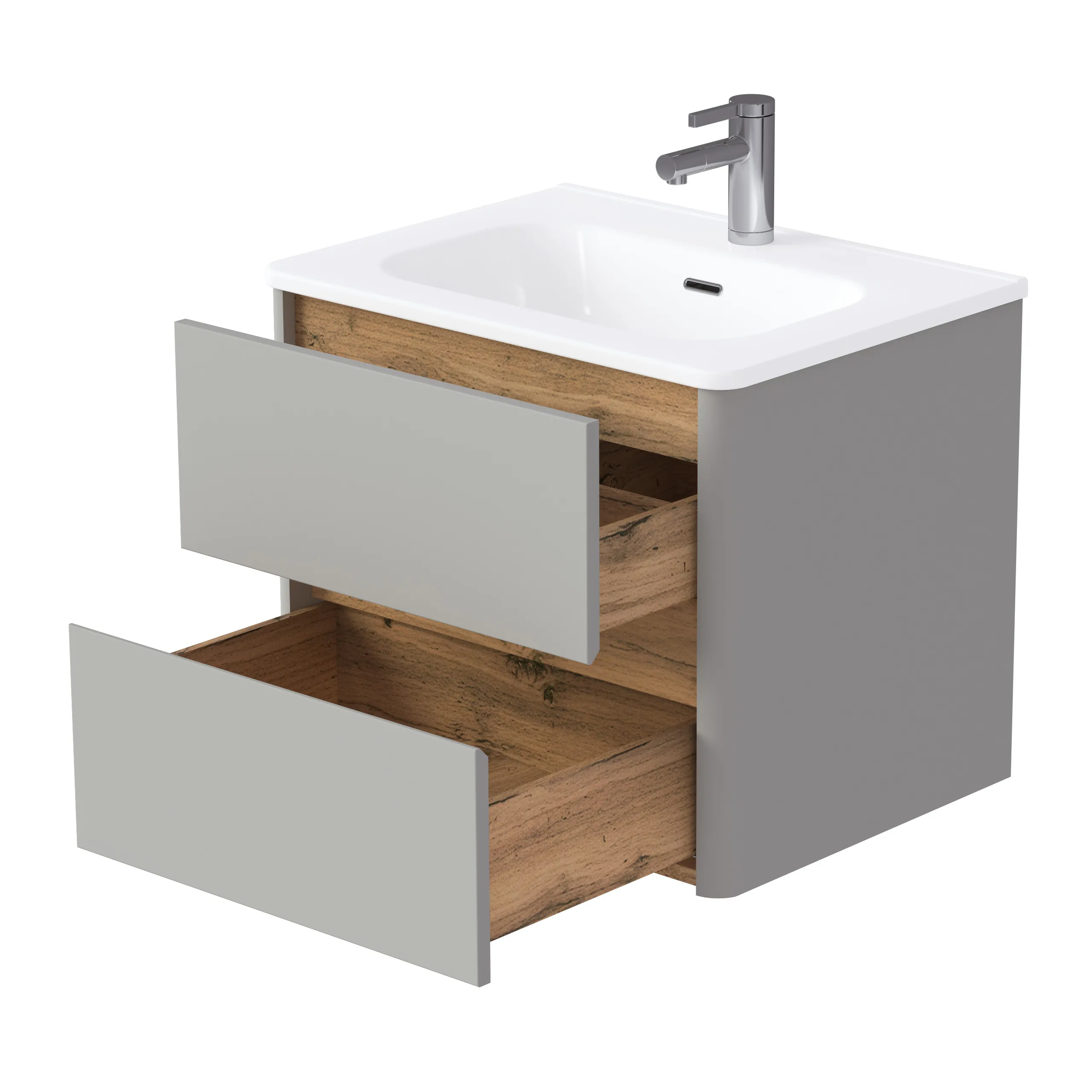 Серая подвесная тумба под раковину* Monа – минималистичная модель, созданная по актуальным тенденциям мебели для ванной. Тумба в ванную Monа— не просто элемент мебели, а символ гармонии и порядка в пространстве ванной комнаты.