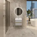 Матовый фасад, интегрированные ручки, керамическая раковина* с широкими бортами и полки в трендовом графитовом цвете придают интерьеру строгость, изящность и подчеркивают его уникальный характер. А белый цвет делает тумбу подходящей для большинства интерьеров ванной комнаты.