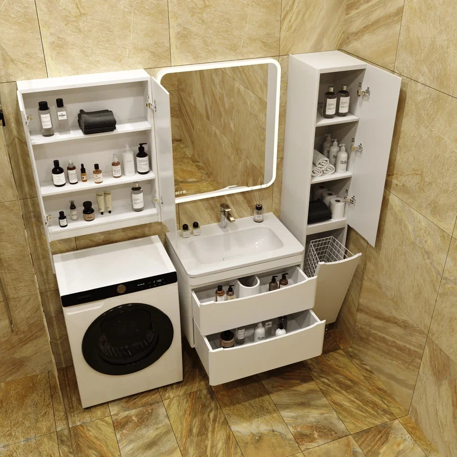 Тумба подвесная с раковиной Style Line "Бергамо мини " (2 ящ.) Люкс антискрейтч белый, PLUS