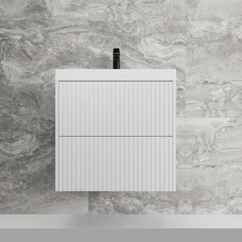 Тумба подвесная "Стокгольм ",с раковиной Classic , (2 ящ.) белый рифленый софт, PUSH